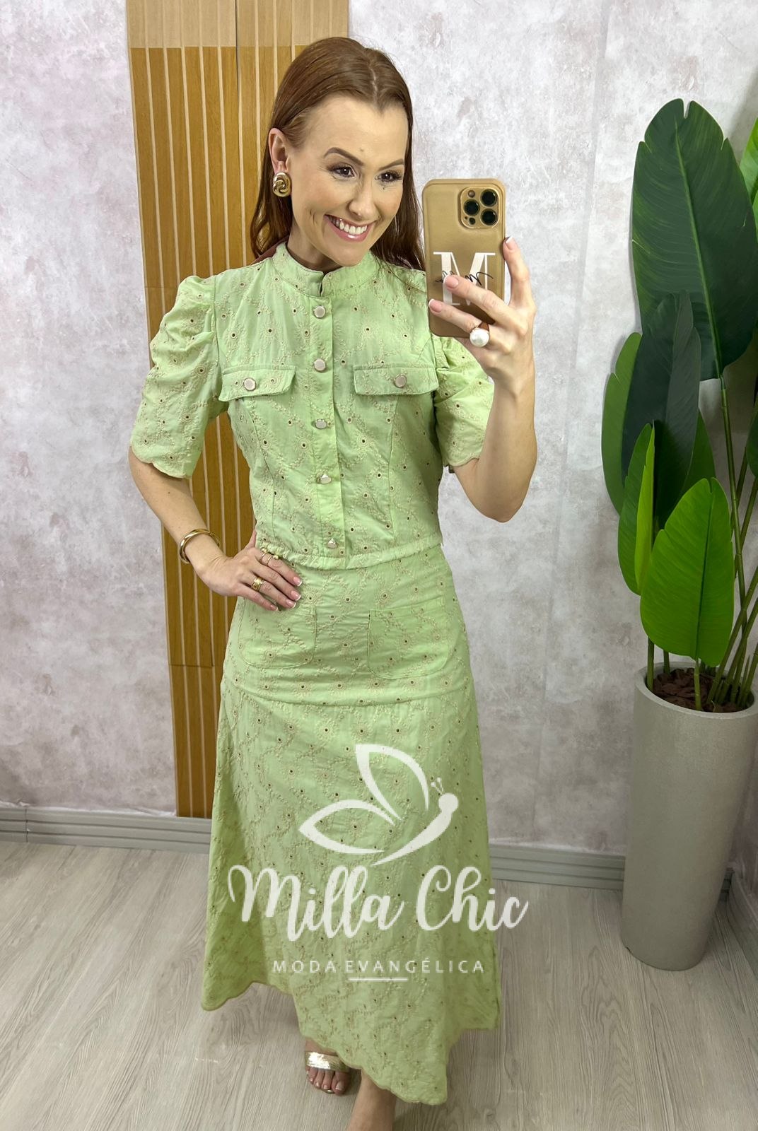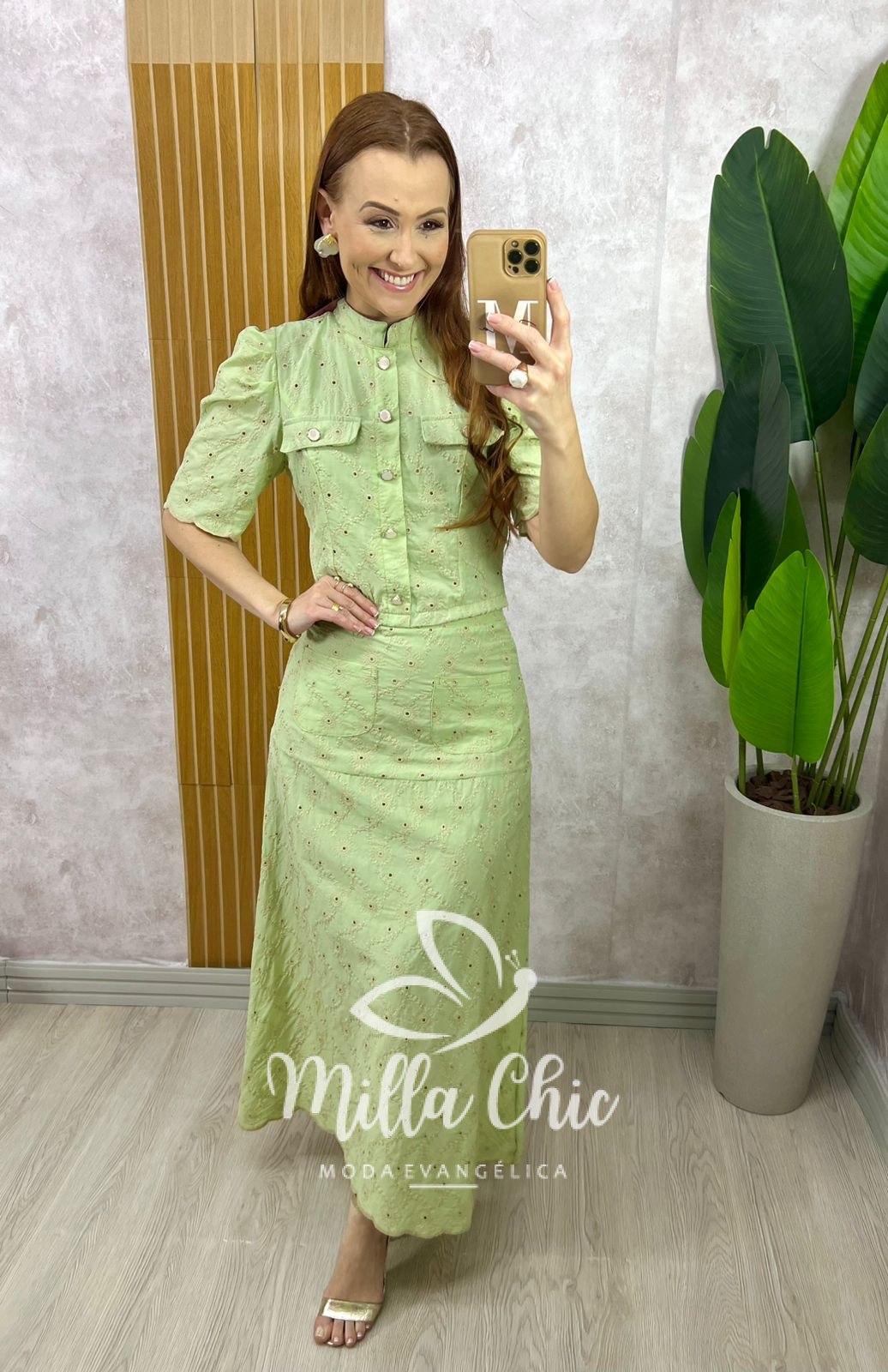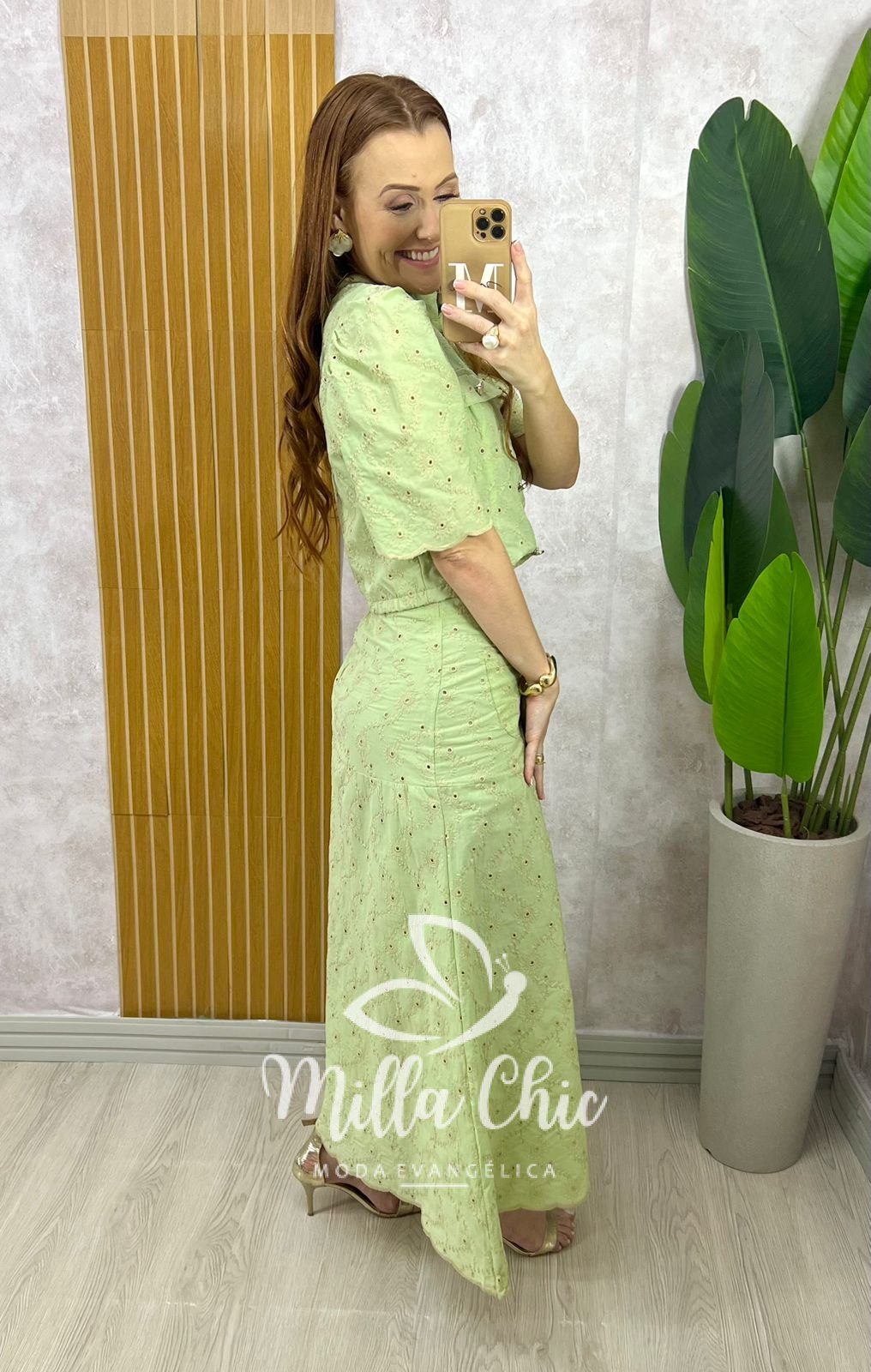 Conjunto Andresa em Lesie Algodão Bordada - Menta - Milla Chic