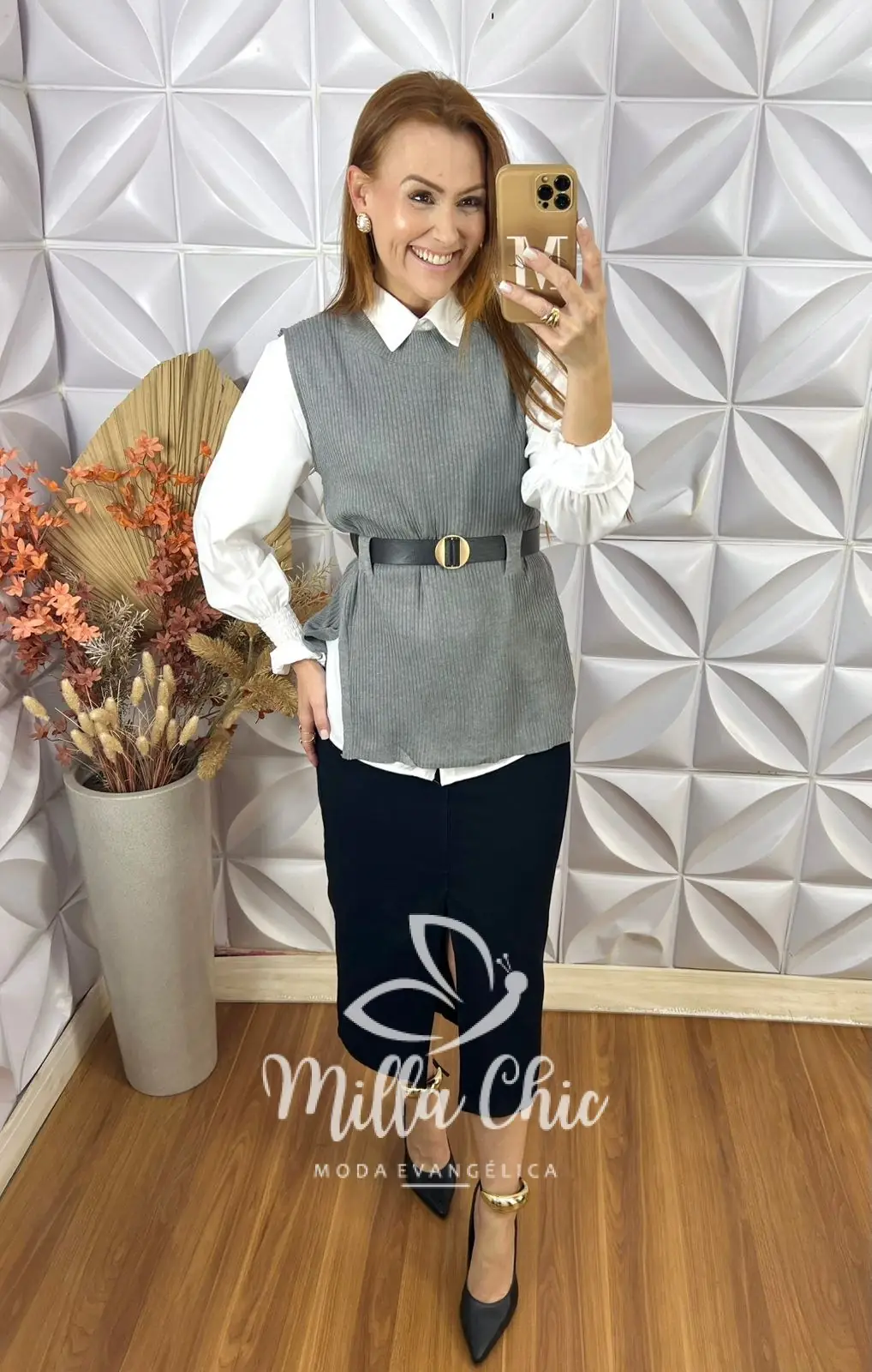 O conjunto Celinha acompanha uma a camisa clássica e atemporal