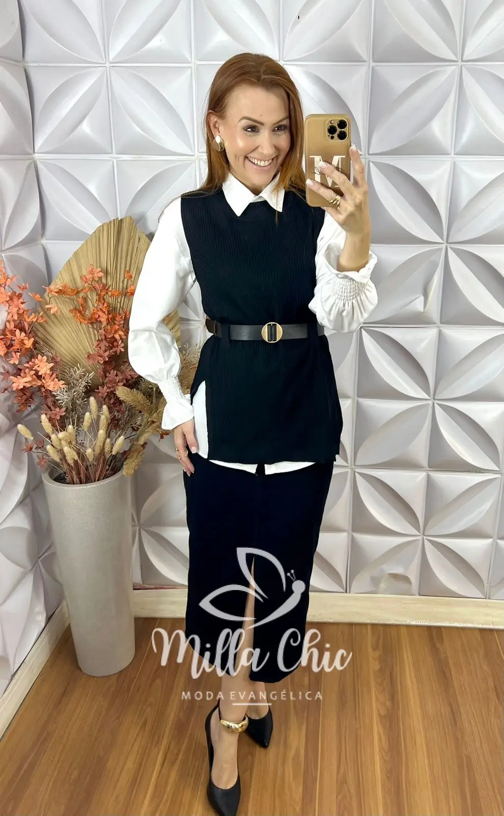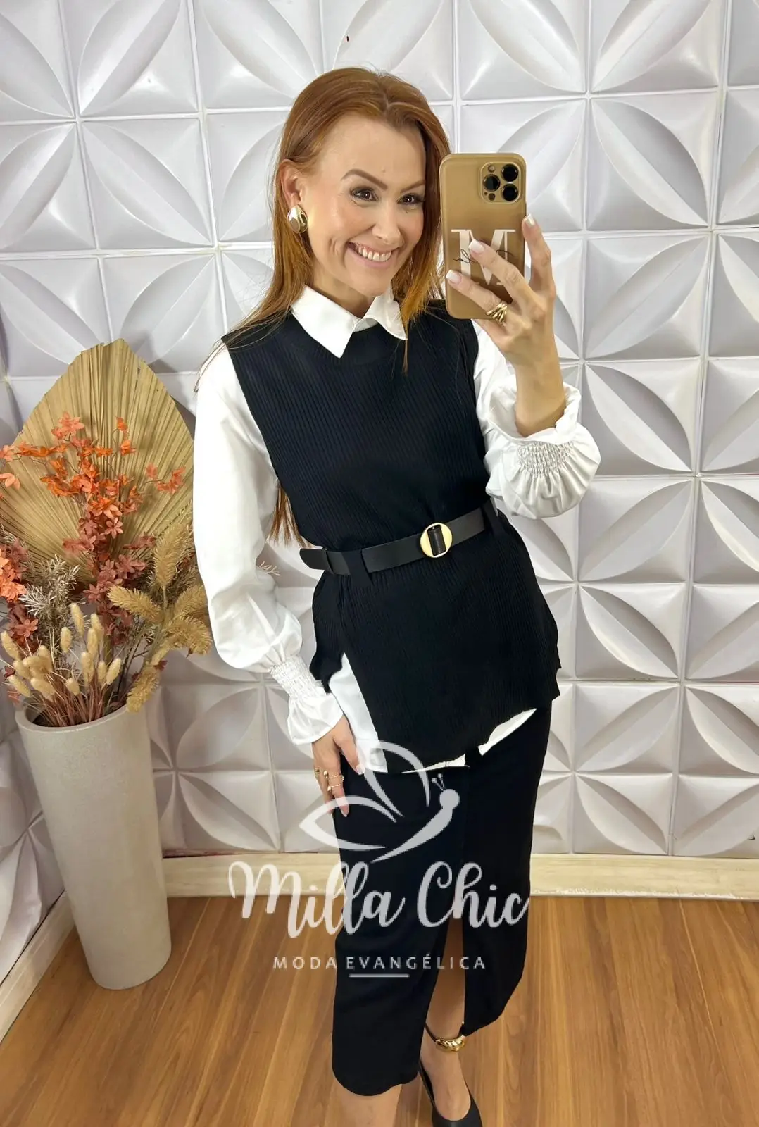 Conjunto Celinha Camisa E Colete Tricot – Preto