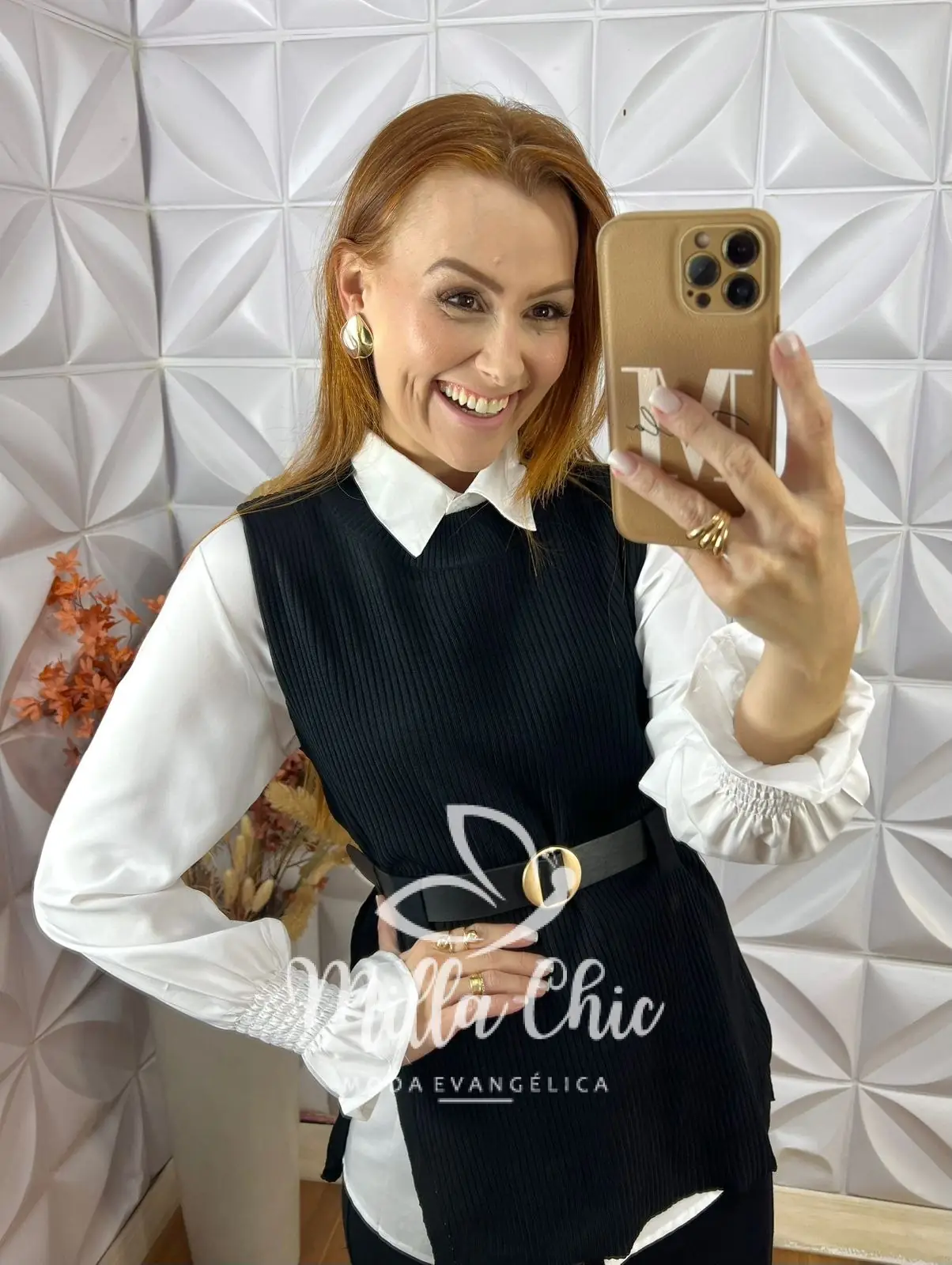 Conjunto Celinha Camisa E Colete Tricot - Bege - Milla Chic