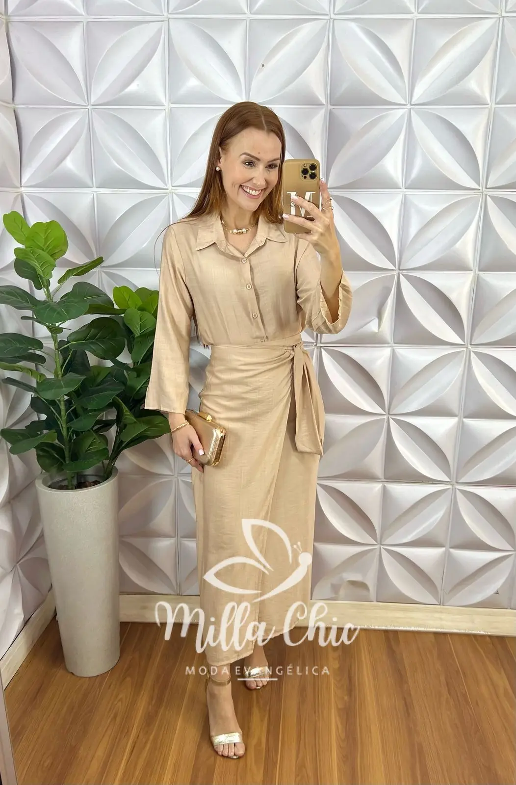 A saia é é um modelo longa muito elegante que veste perfeitamente . Ela possui zíper atrás e transpasse na frente que deu todo um charme e uma elegância sem tamanho . Uma peça coringa que dá para usar muito.