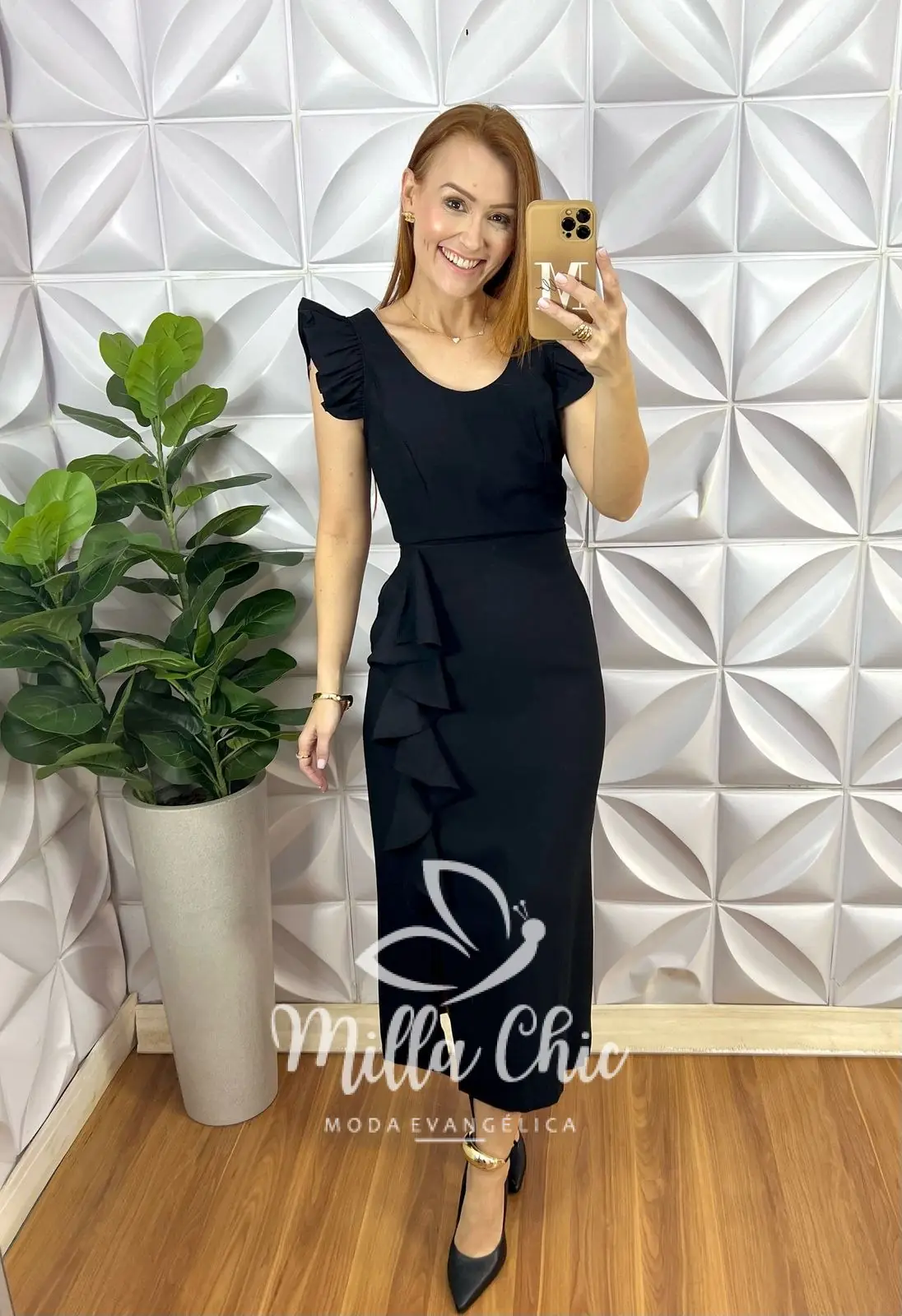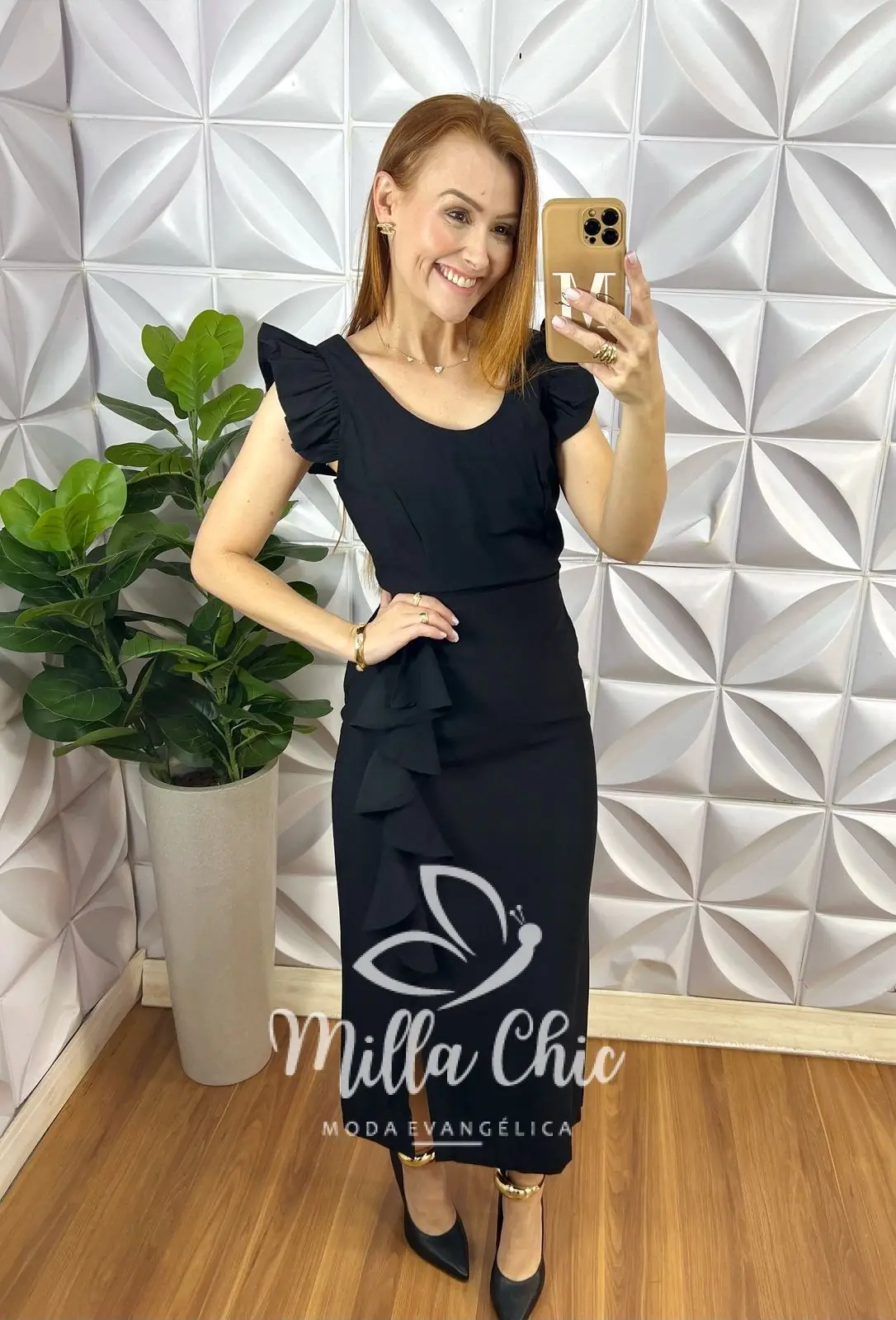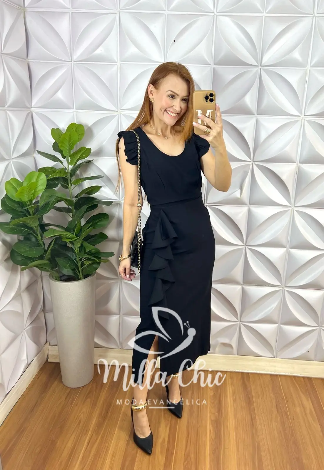 A saia está perfeita . Aquela saia reta com uma modelagem maravilhosa . Zíper na lateral e elástico na cintura só na parte das costas . Comprimento midi e esse detalhe de babado que deu um charme imensurável.