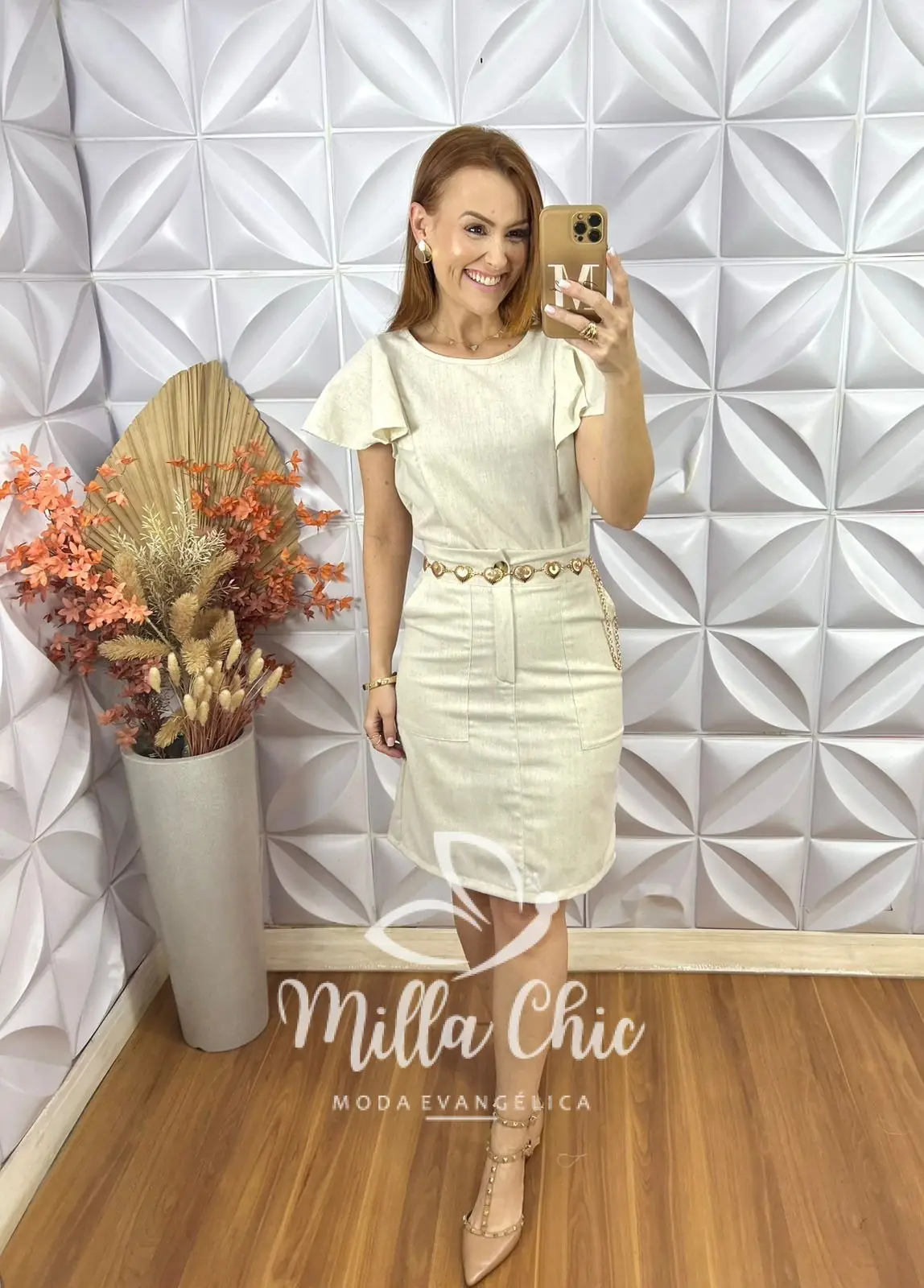 A blusa com uma proposta moderna e chic ela tem as mangas babados que transmitem muita elegância e modernidade zíper na lateral em uma prosposta mais larga no comprimento ideal .