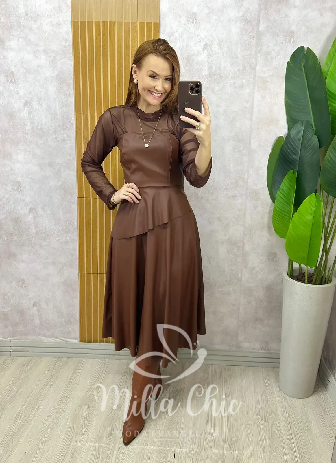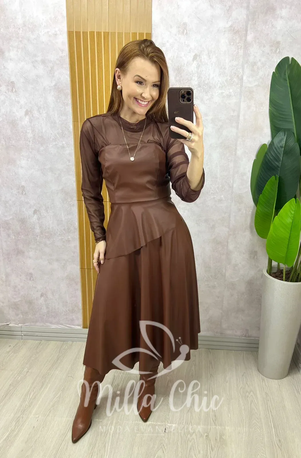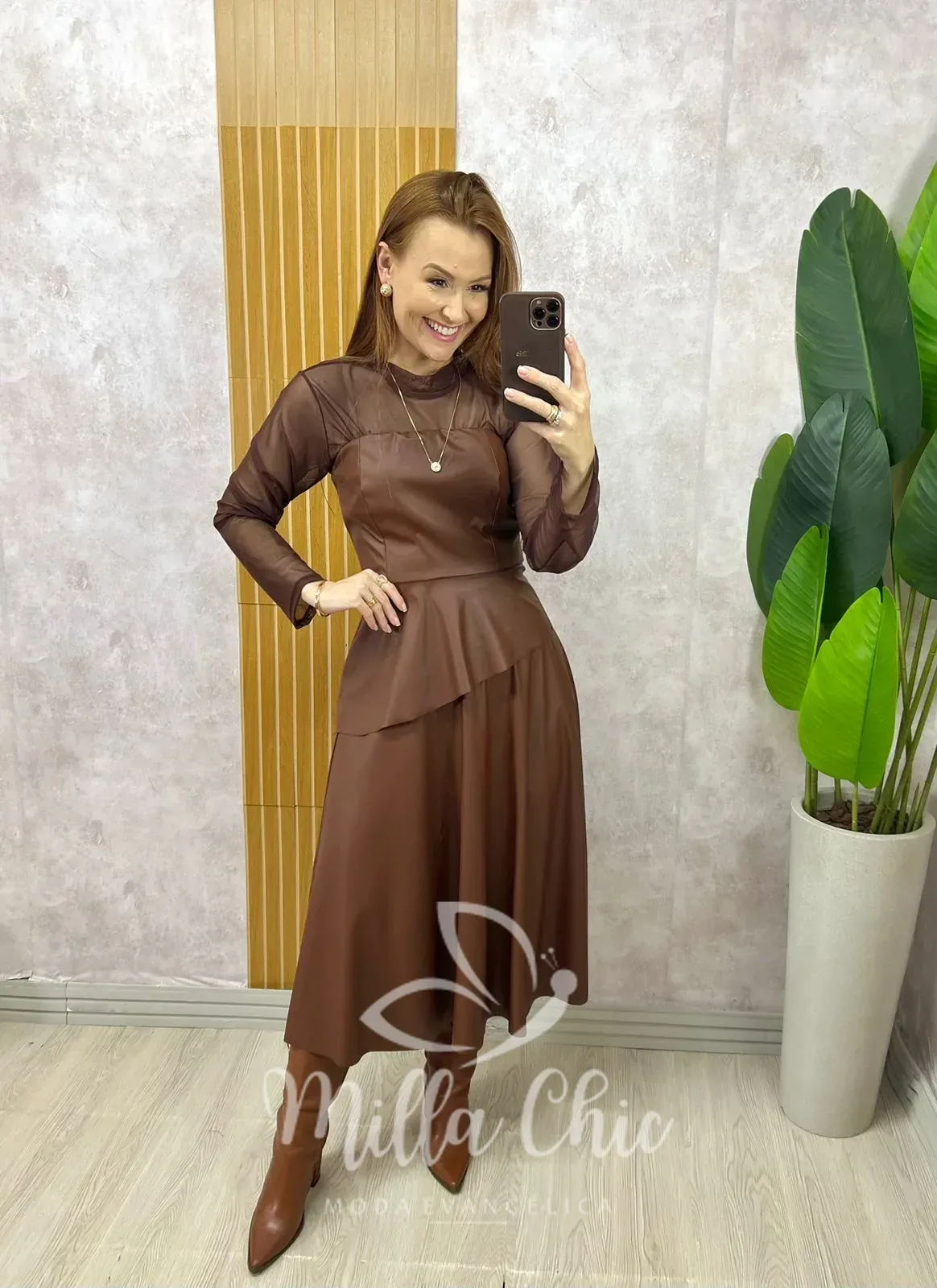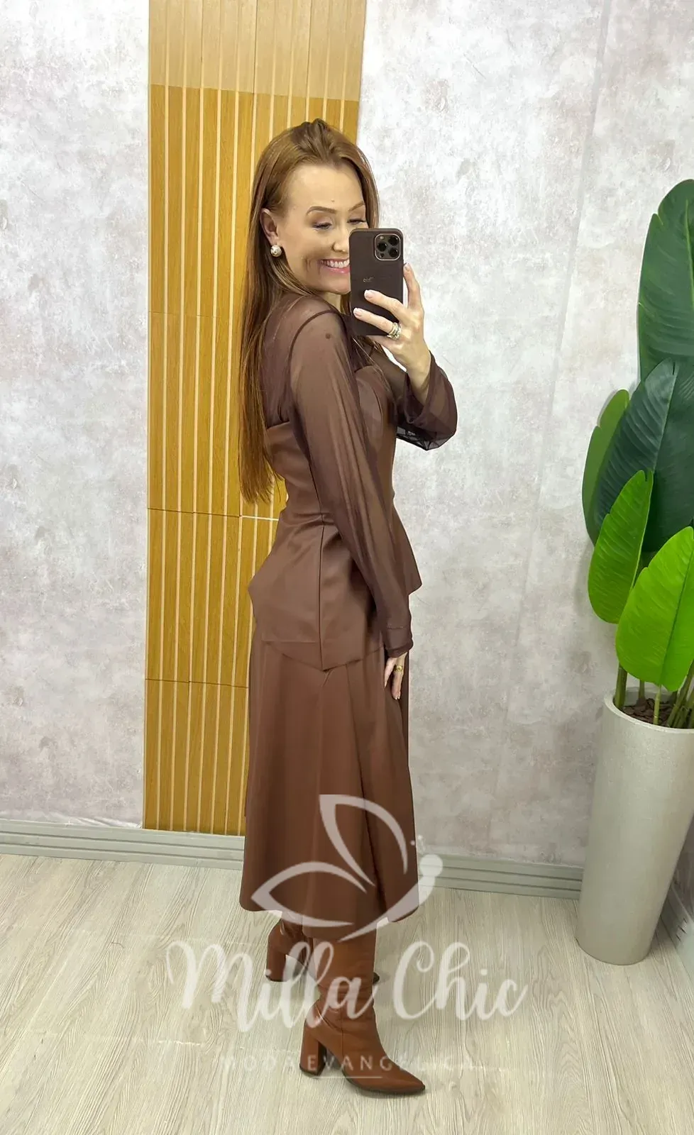 O Conjunto Helena é a escolha perfeita para quem busca elegância com um toque fashionista. Confeccionado em P.U, traz um visual sofisticado e atual, valorizando a silhueta com muito estilo.