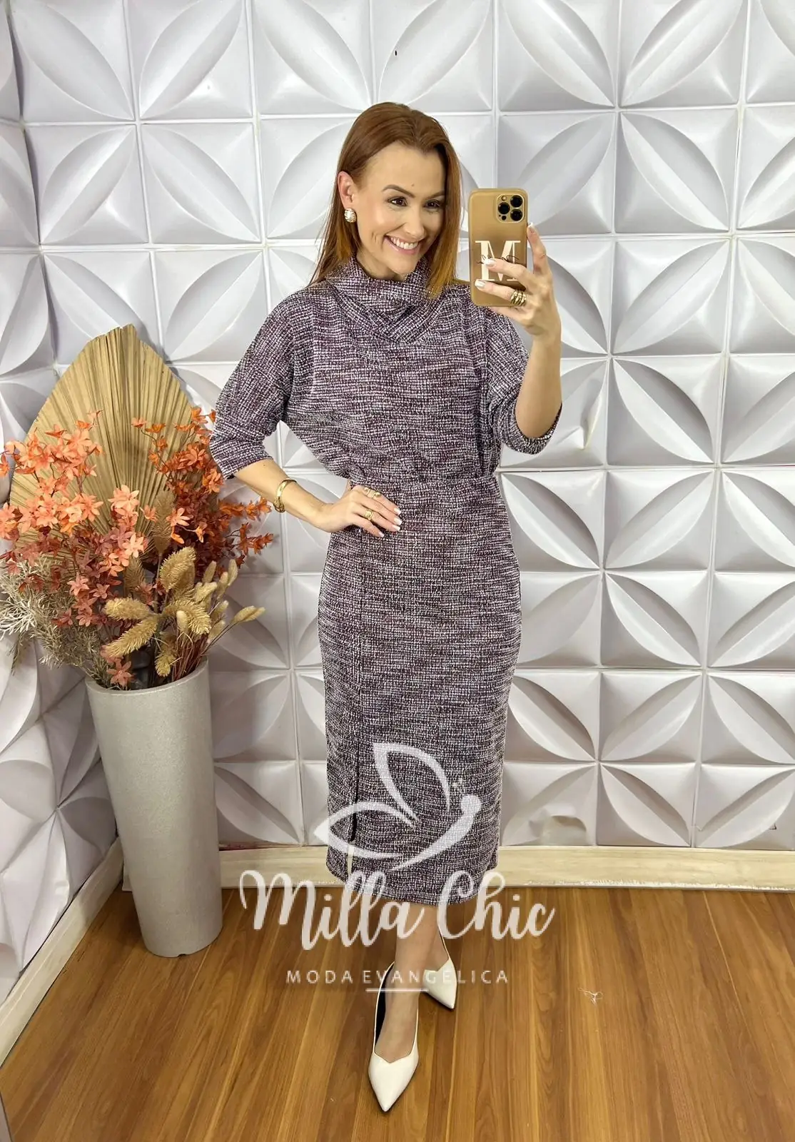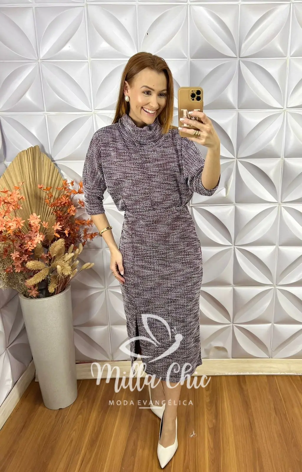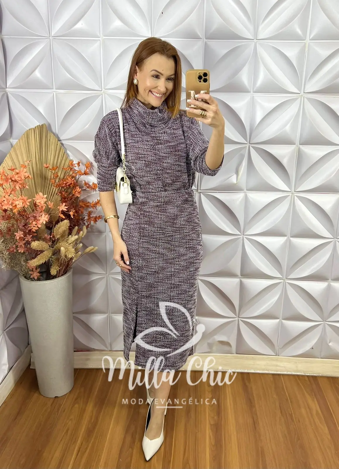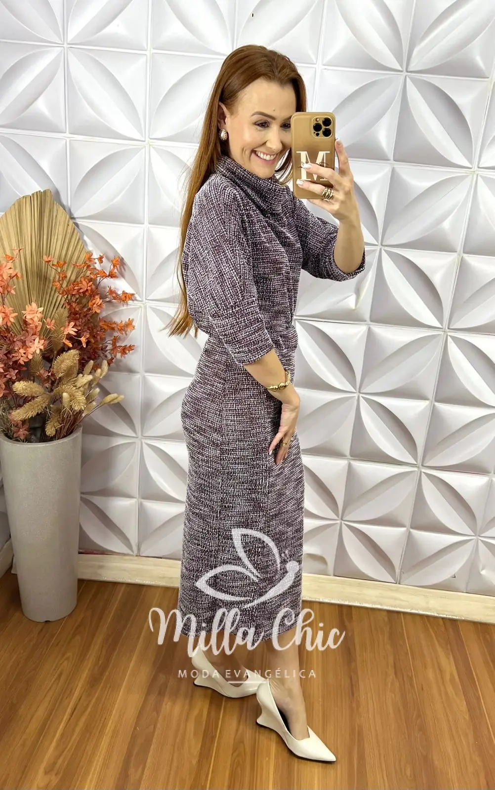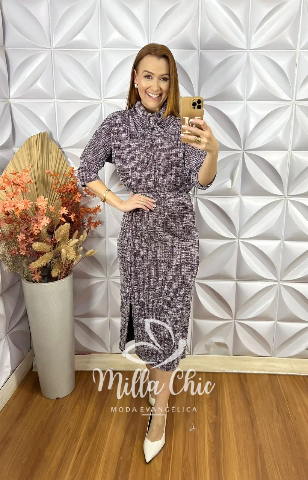 Confeccionado em tweed com elastano que proporciona um caimento firme e que adapta no corpo por conta do elastano e sem perder o conforto. A saia em modelagem reta clássica modelo mídi com fenda lateral .