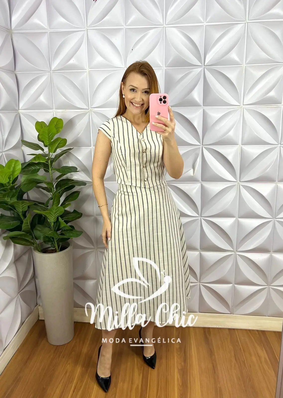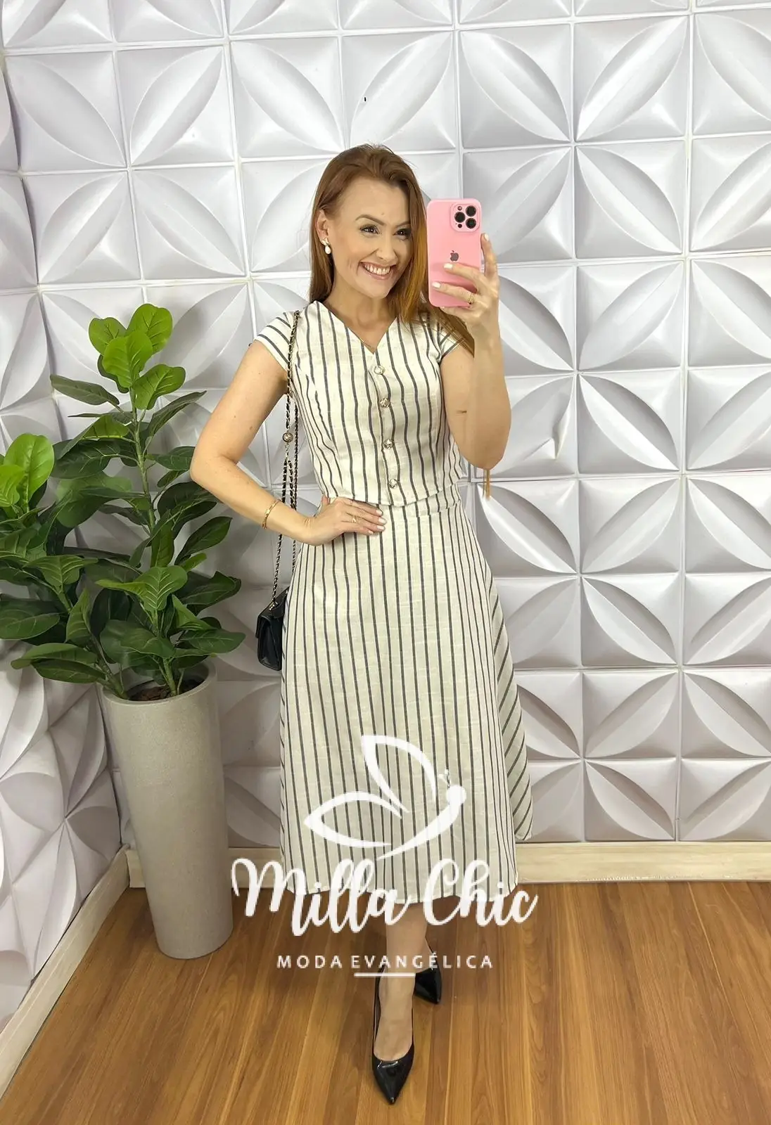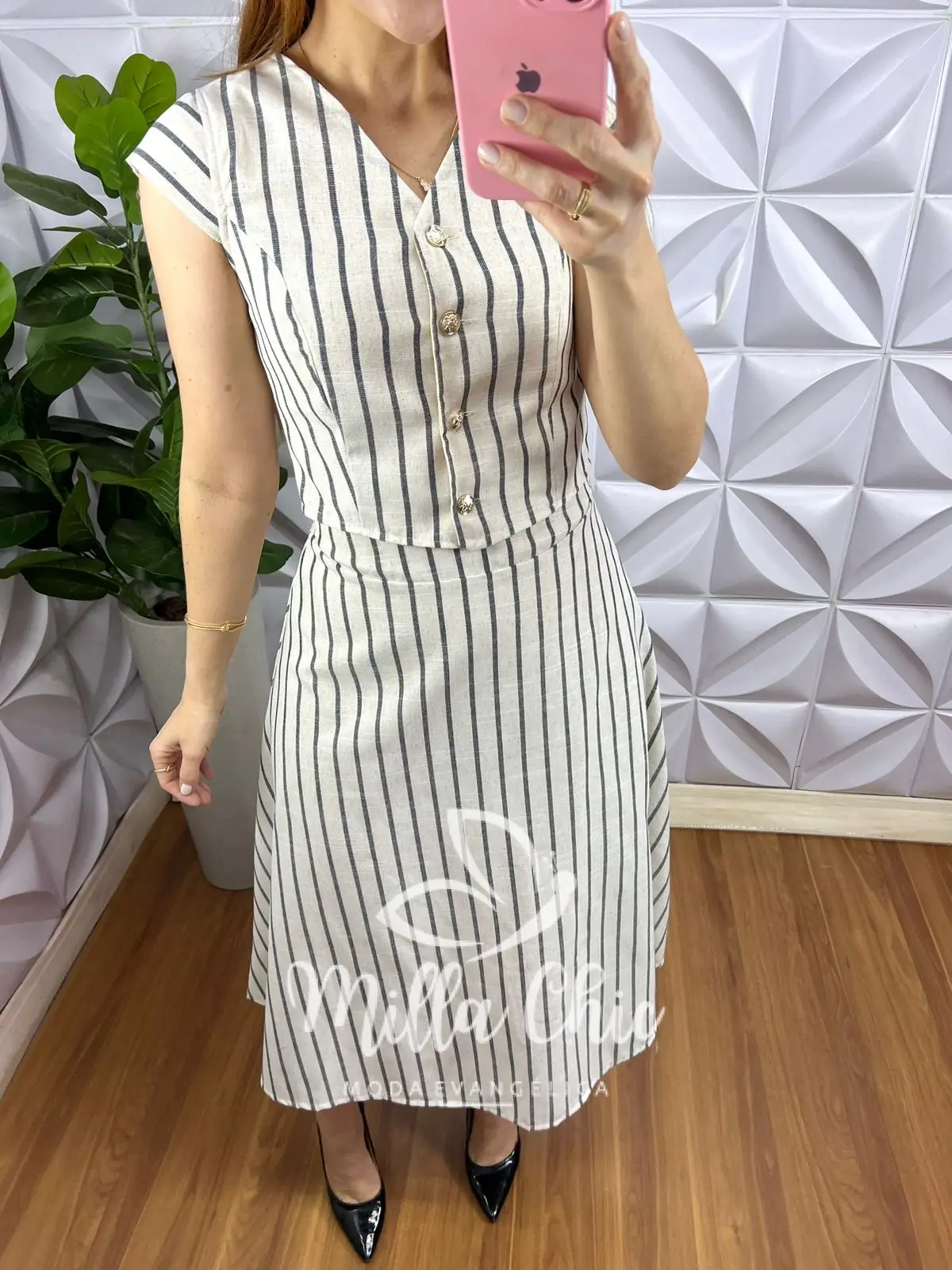Conjunto no Linho tecido que esta incrível! Com estampa listrada que esta um charme!