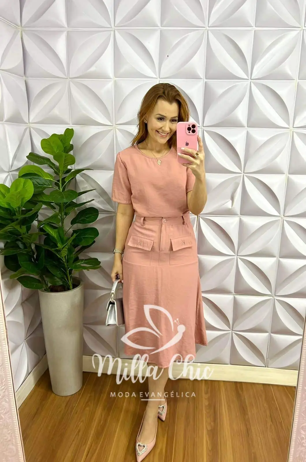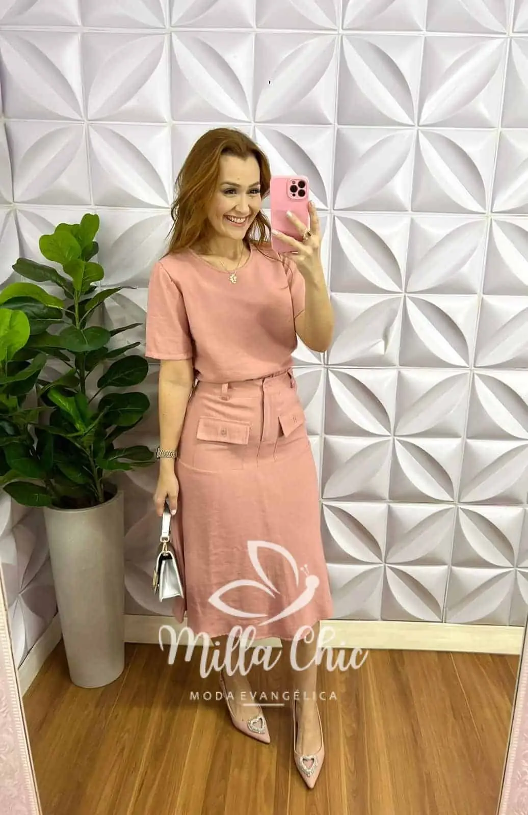 Conjunto Linhocel Mídi Com Bolso Luara - Rosa - Milla Chic