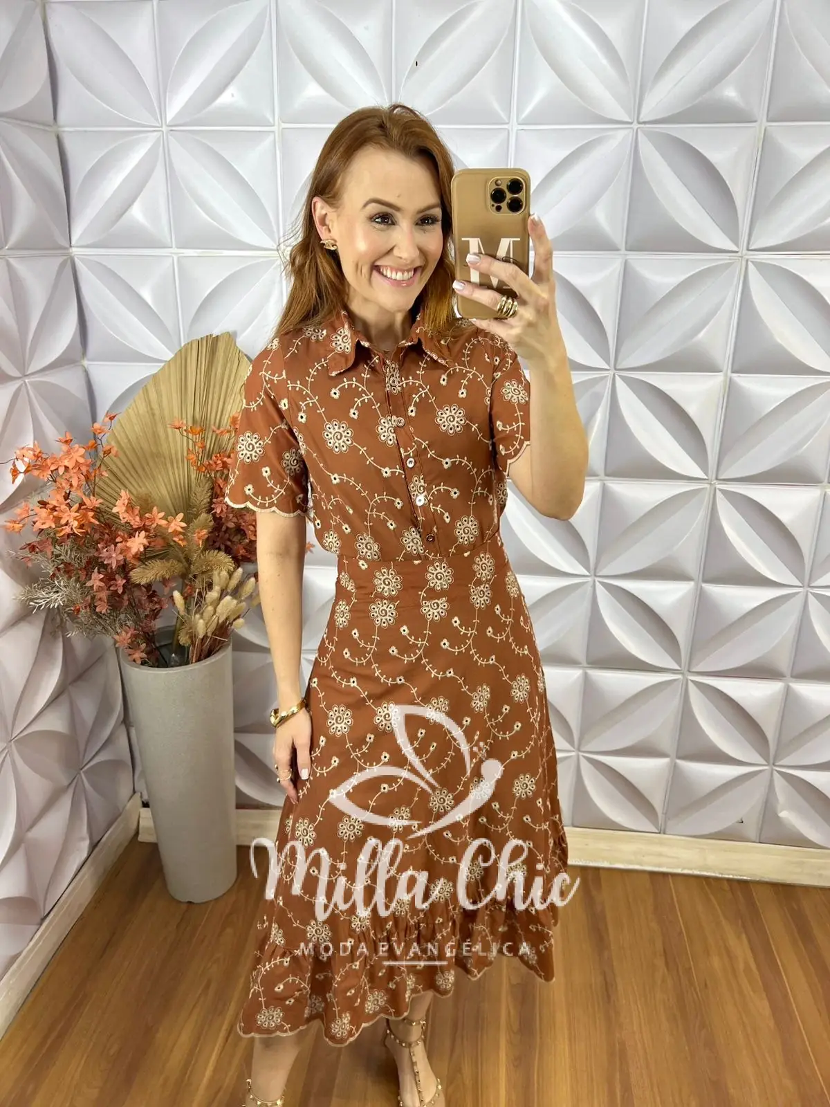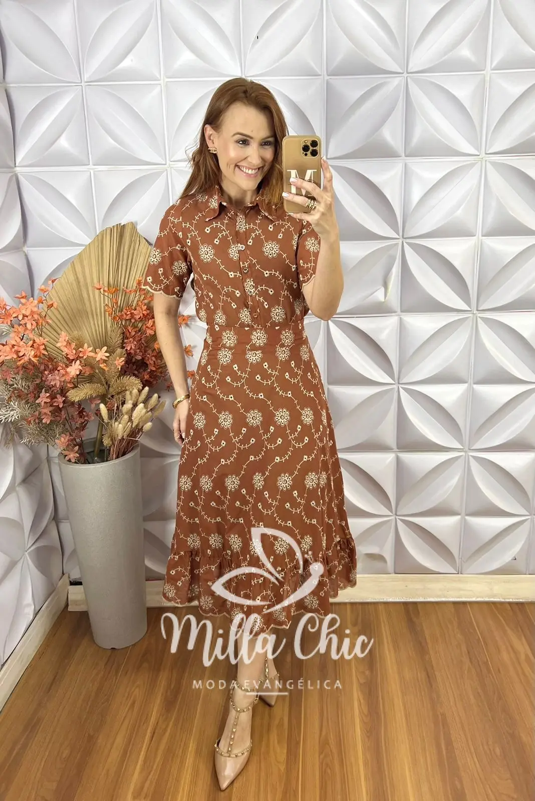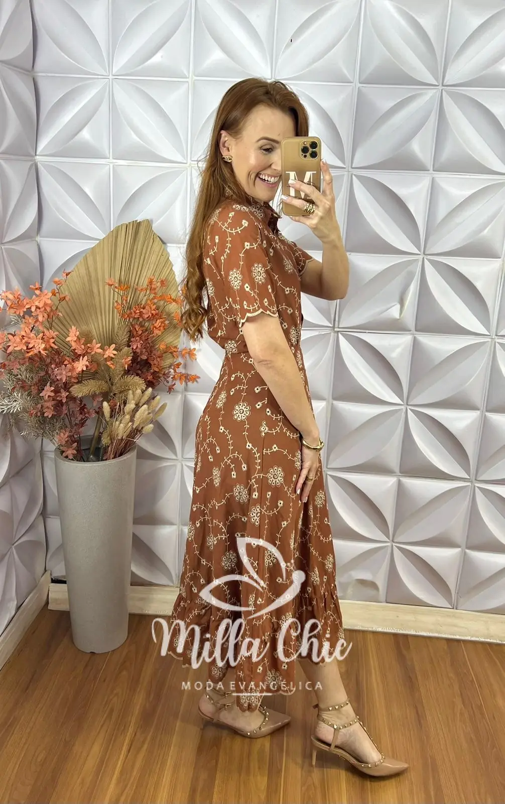A saia está perfeita . Aquela saia reta com uma modelagem maravilhosa . Zíper atrás e toda forrada . Comprimento midi no mesmo godê sem armar . O babado na barra da aquele toque super romântico e delicado .