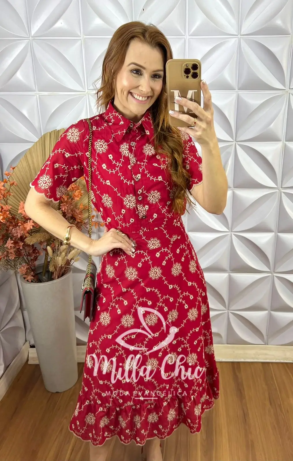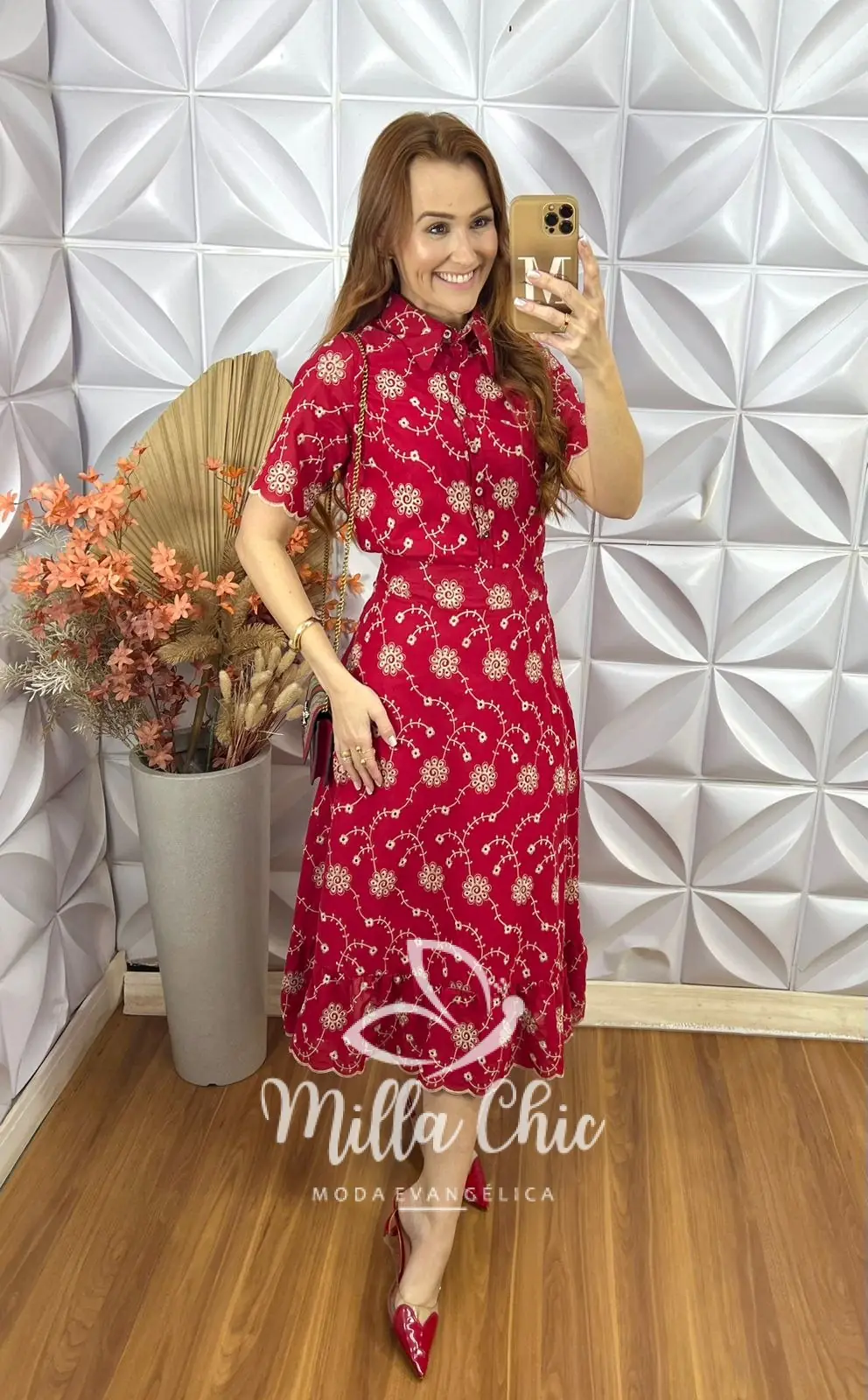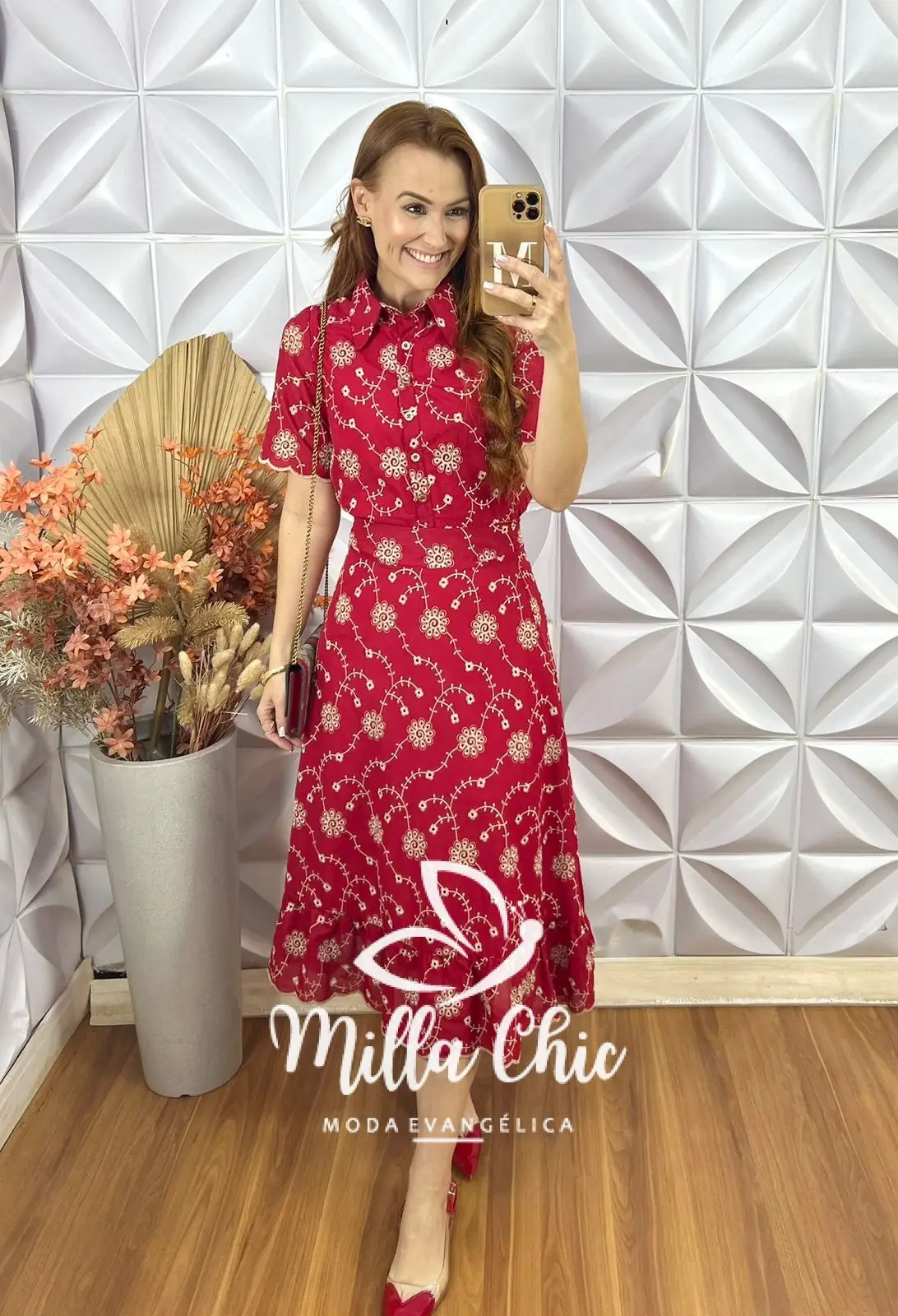 A saia está perfeita . Aquela saia reta com uma modelagem maravilhosa . Zíper atrás e toda forrada . Comprimento midi no mesmo godê sem armar . O babado na barra da aquele toque super romântico e delicado .