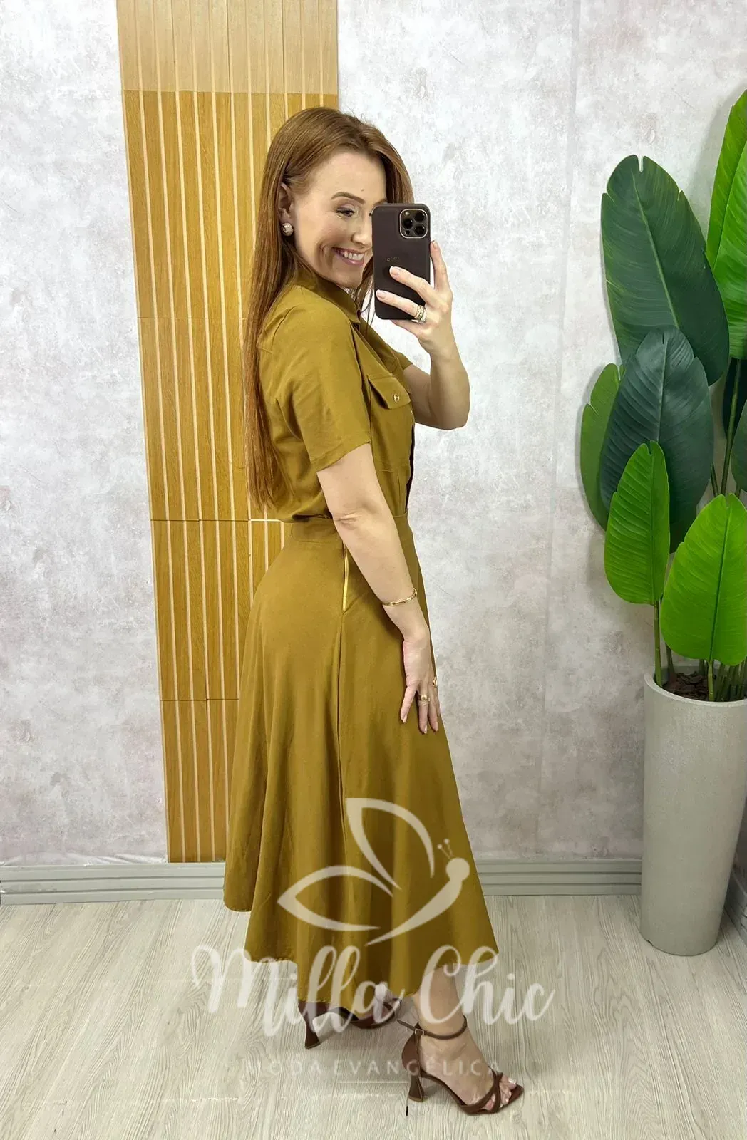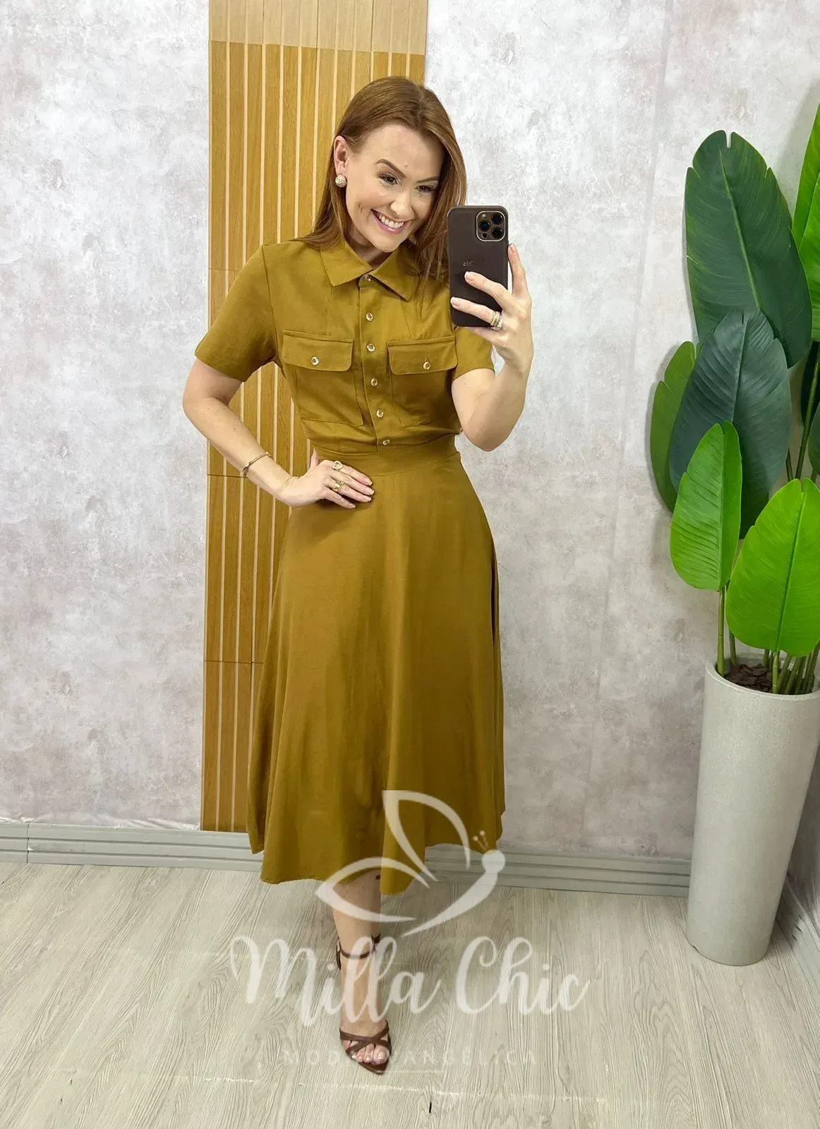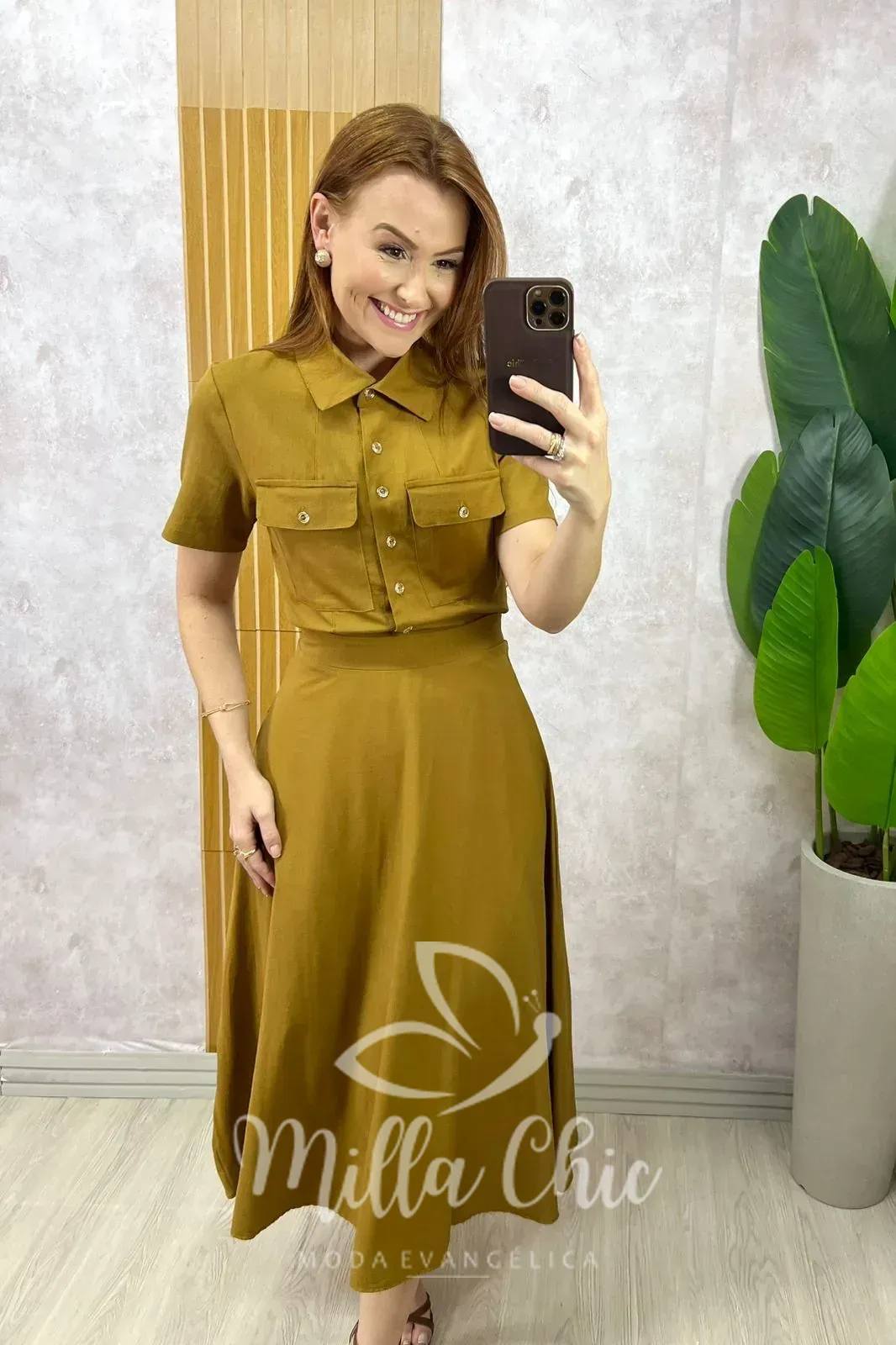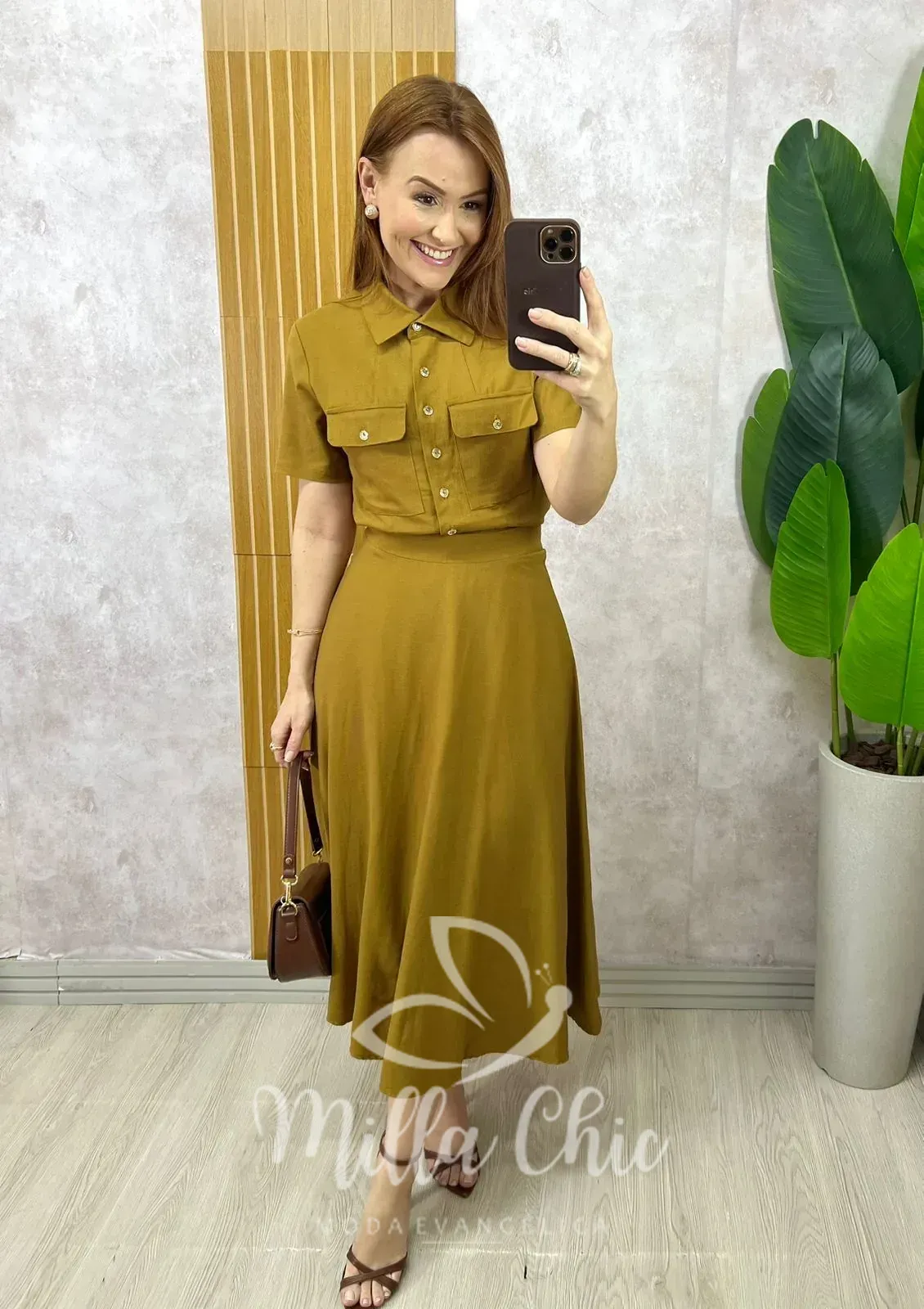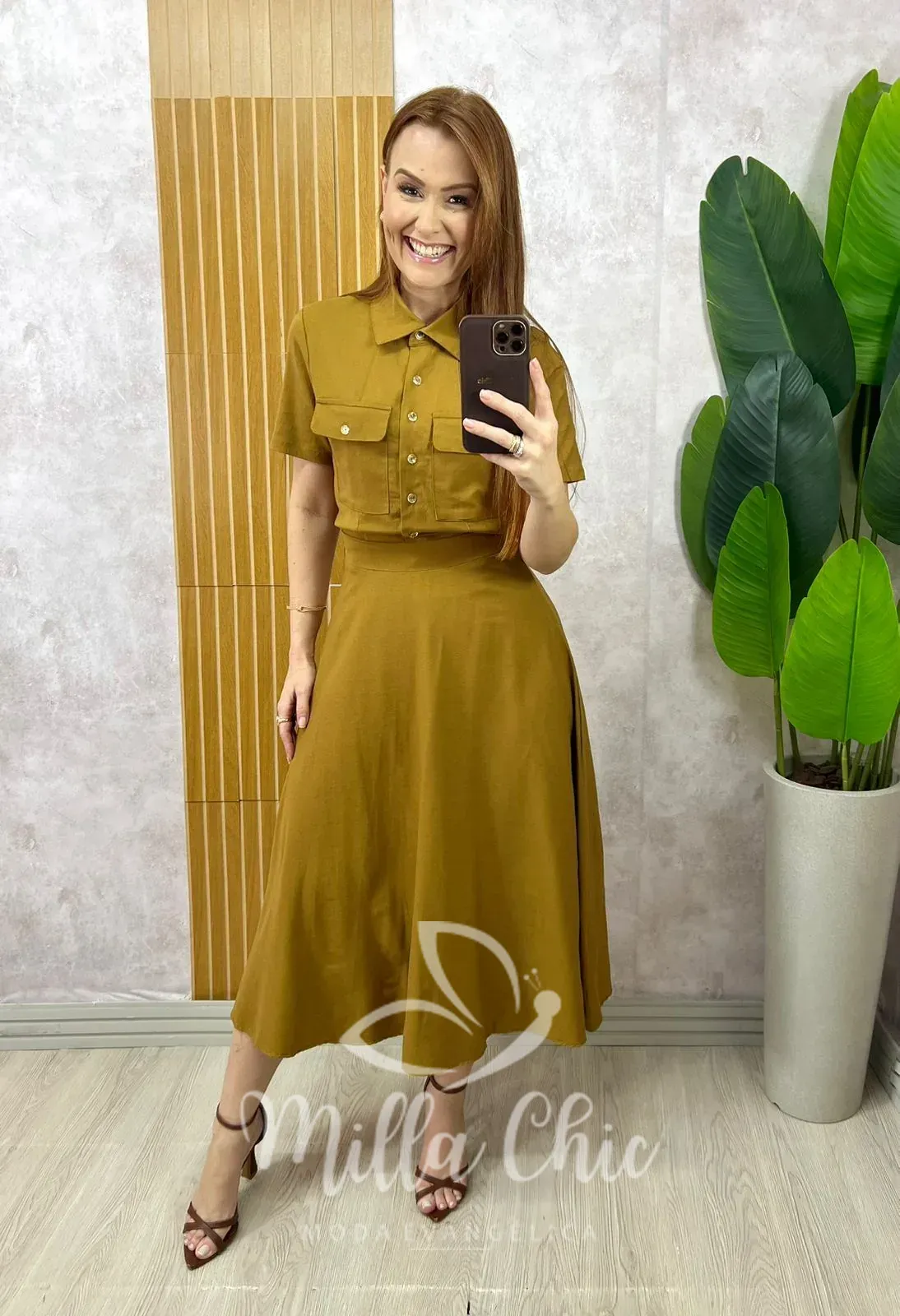 Composto pela camisa e a godê com o caimento perfeito . Comprimento midi ( chiquérrimo) zíper na lateral .