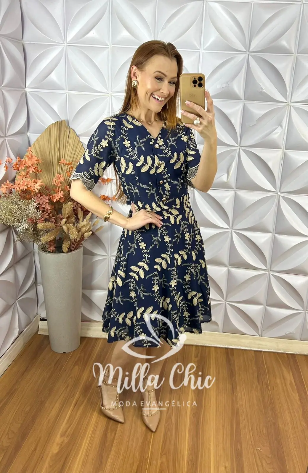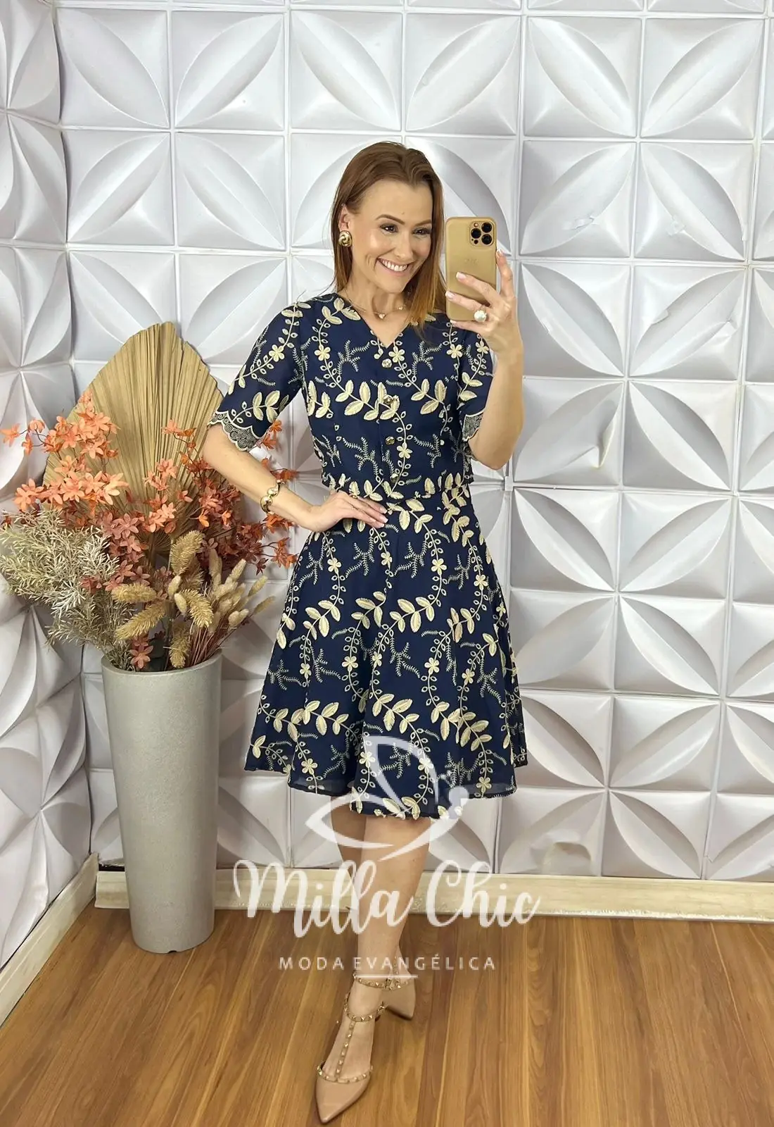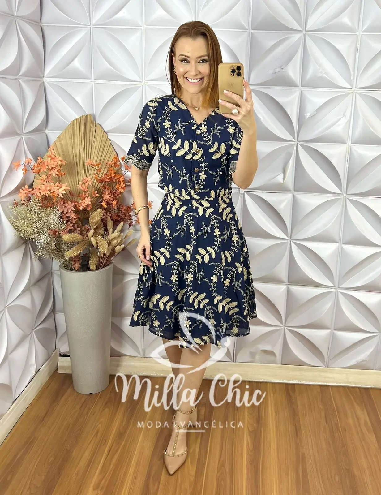 A saia está perfeita . Em modelagem godê que traz uma feminilidade e delicadeza sem igual . Toda forrada e o fechamento em zíper lateral.