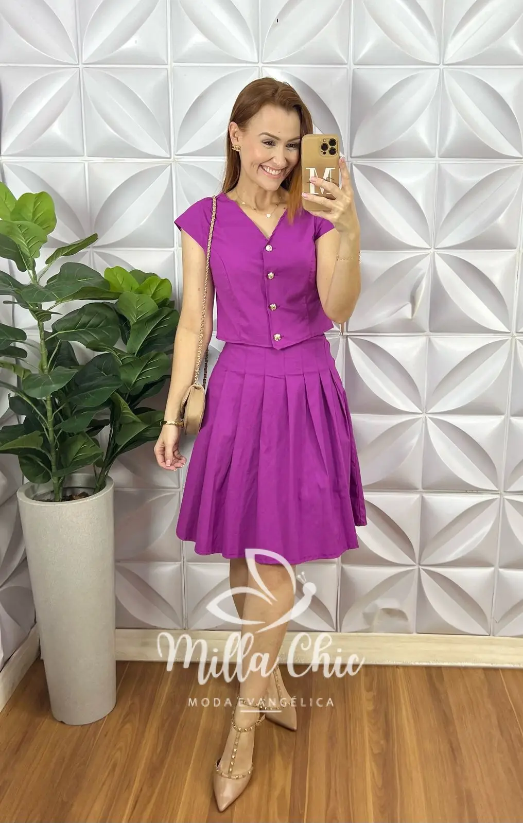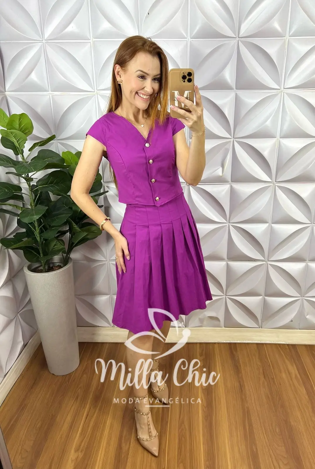 A saia é é um modelo clássico e romântico. Todas em pregas em uma modelagem perfeita. Uma peça coringa que dá para usar muito. Toda forrada e zíper na lateral . Ela possui um elástico no cos só na parte das costas para ficar bem certinha no corpo . Cos alto .