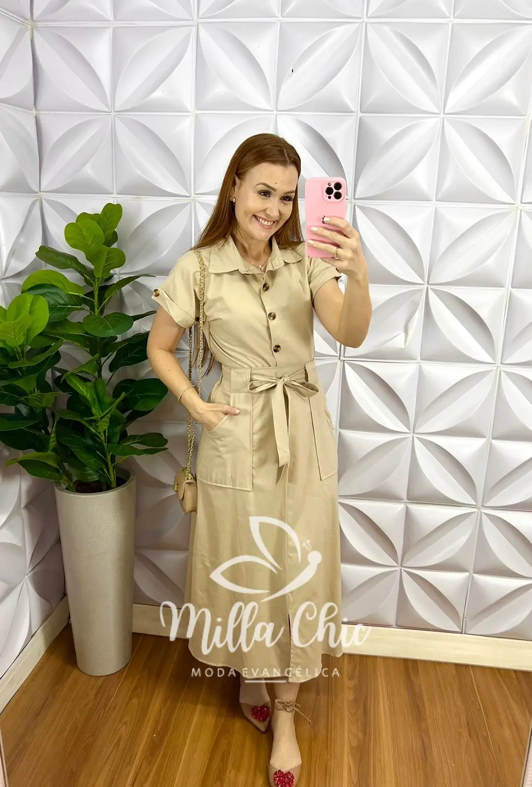 Conjunto Tricoline De Algodão Com Camisa E Saia Mídi Paula - Areia - Milla Chic