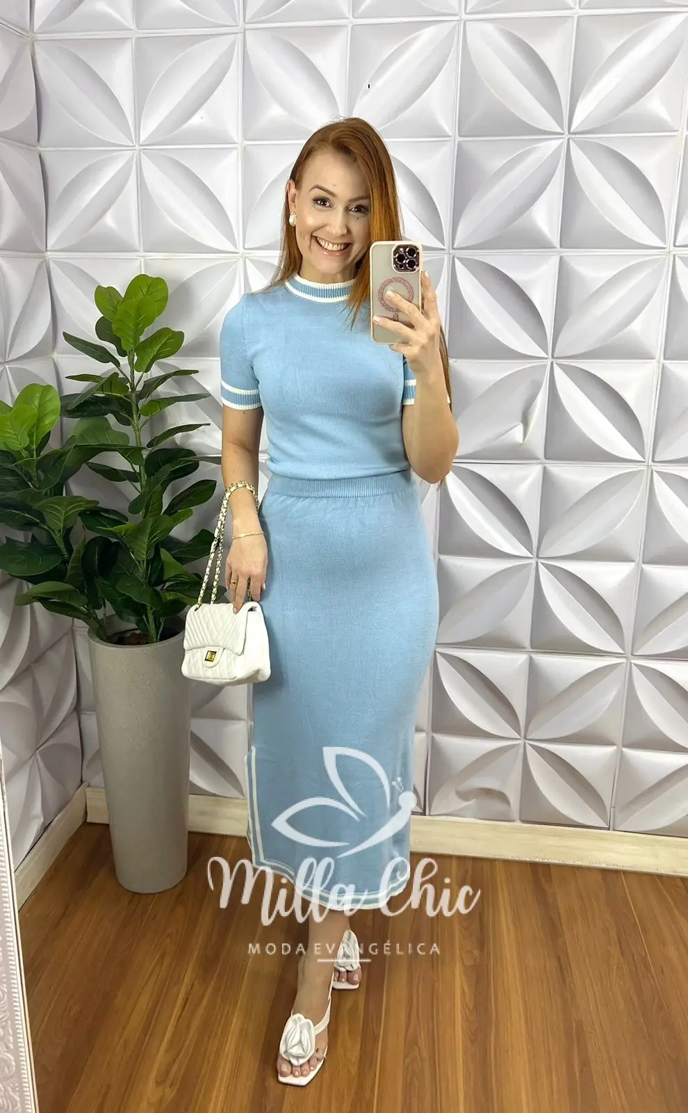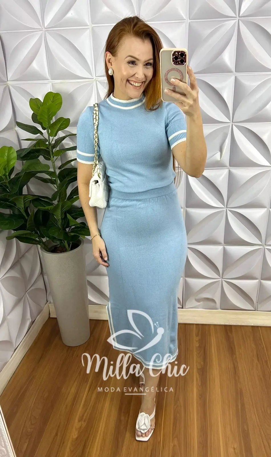 Conjunto no Tricot modal tecido que esta incrível! Com listras bicolor nas barras e laterais que esta um charme!