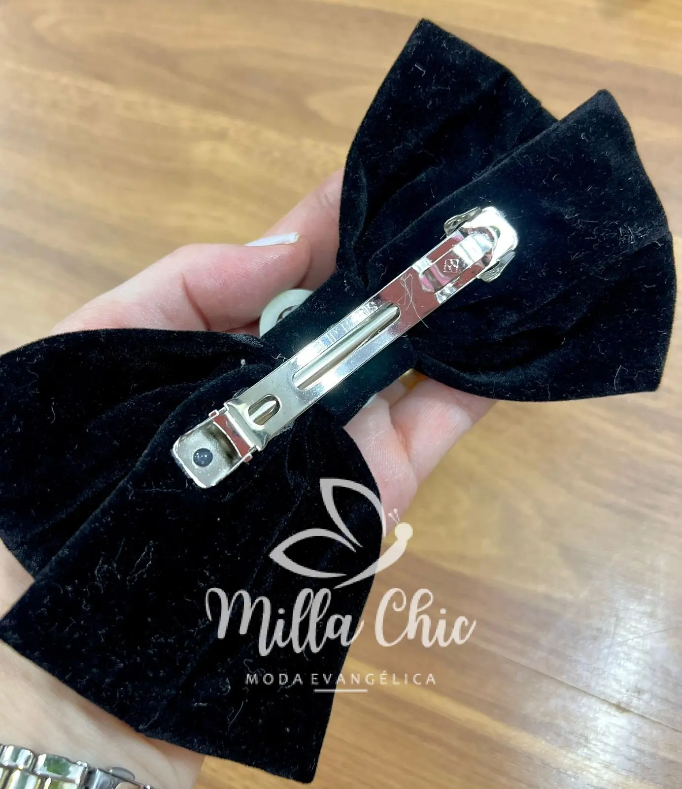 Laço Grande De Veludo Com Broche Karen - Preto Detalhe Preto - Milla Chic