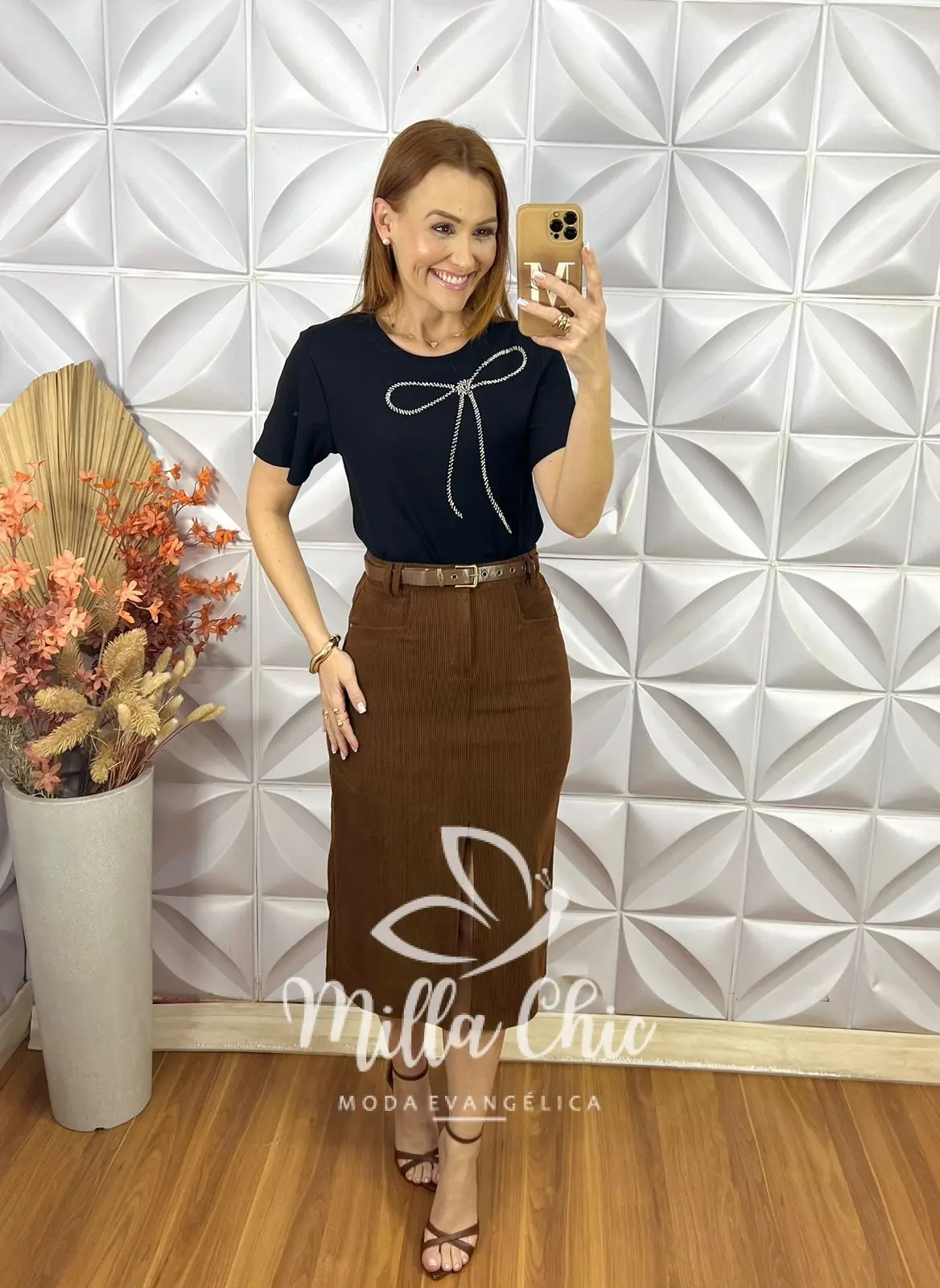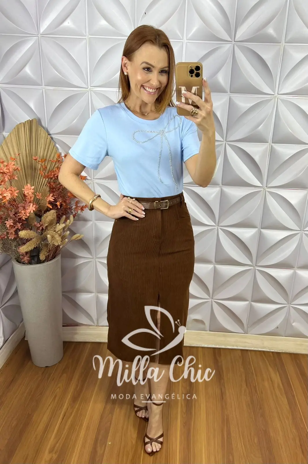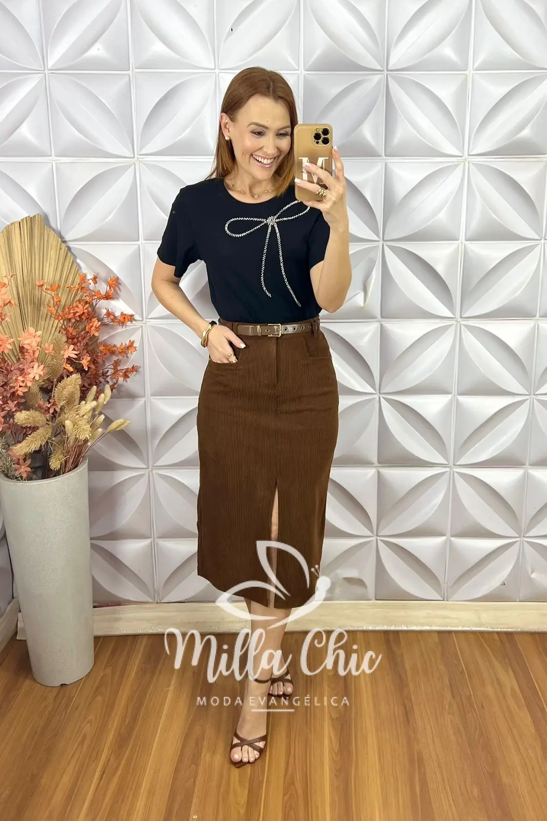 Pensa em uma saia que você pode montar vários looks que vão desde um passeio no shopping ao culto . E nos dias mais frios com uma meia e uma bota fica perfeita.