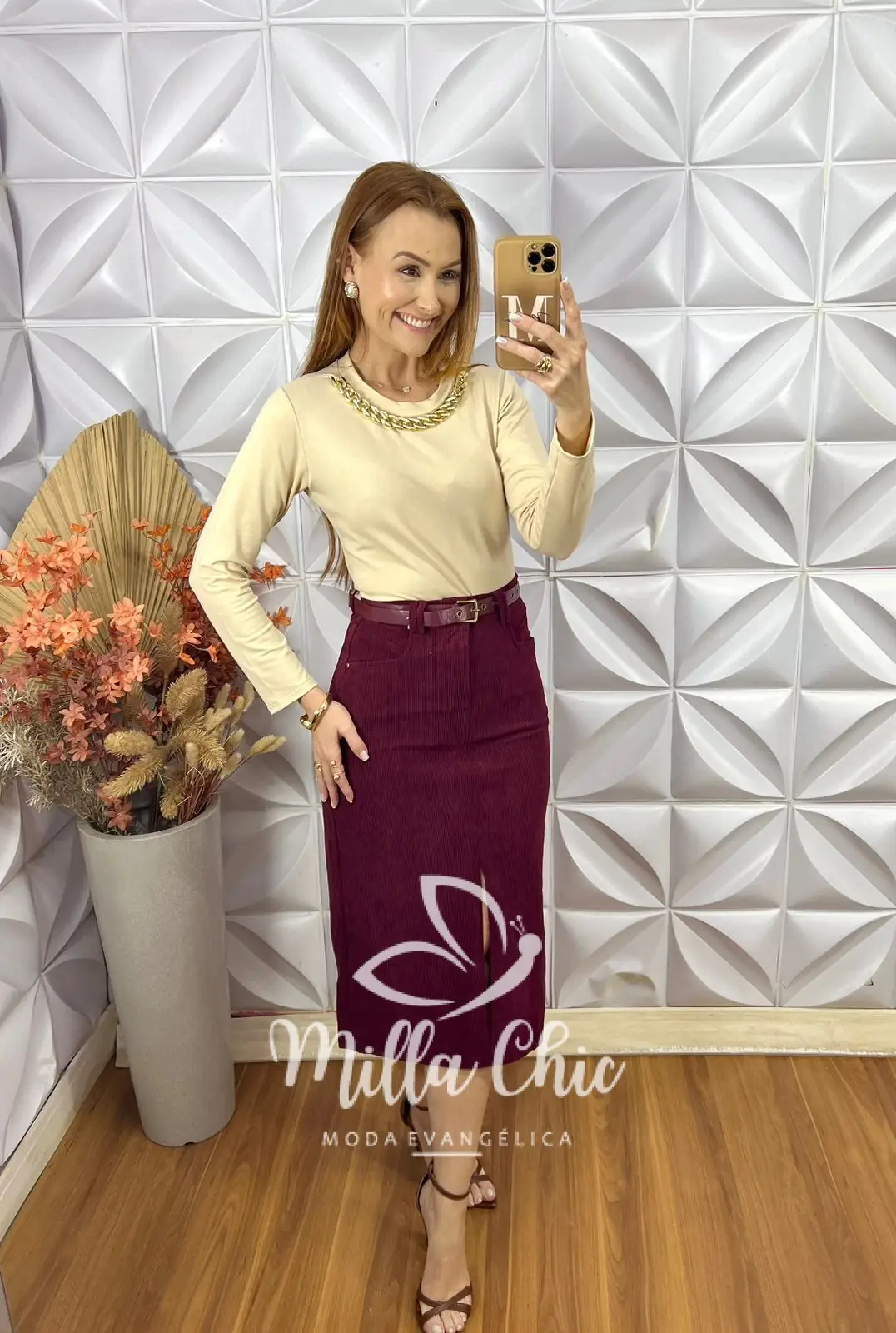 Saia Altina Em Cotelê - Marsala - Milla Chic