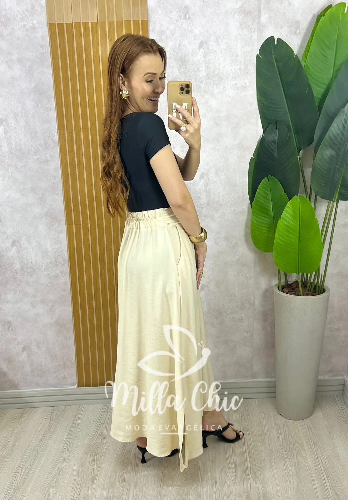 Saia Ayde Em Alfaiataria Marrant - Creme - Milla Chic