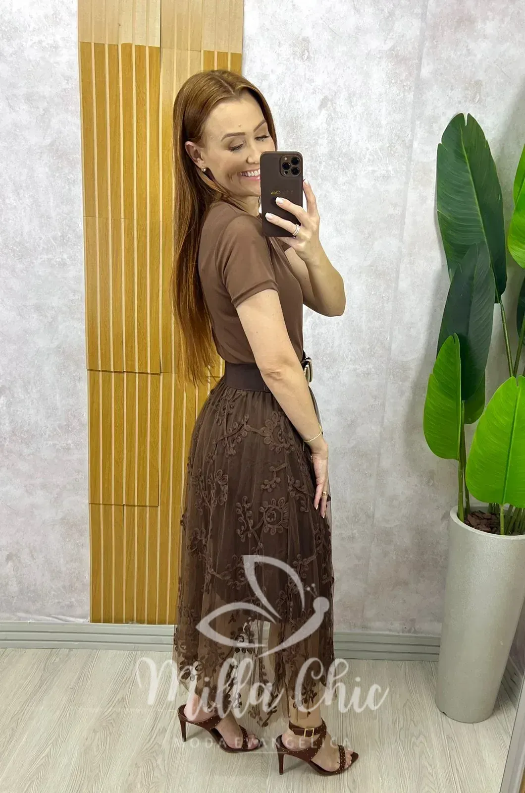 Saia Celina Em Tule Bordado – Marrom