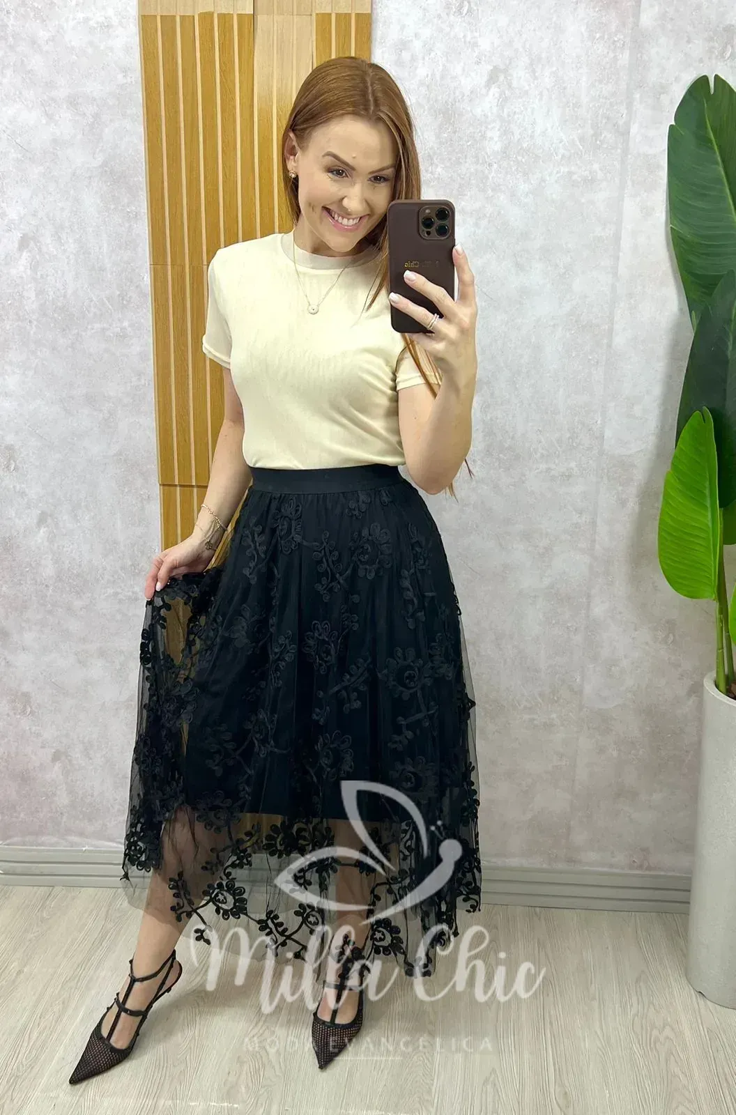 Saia Celina Em Tule Bordado – Preto