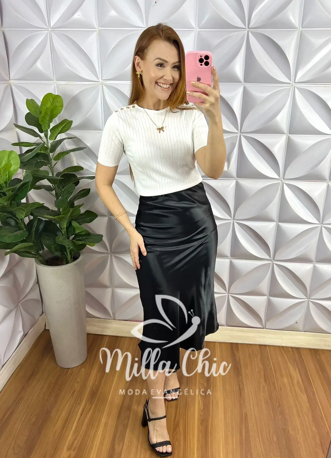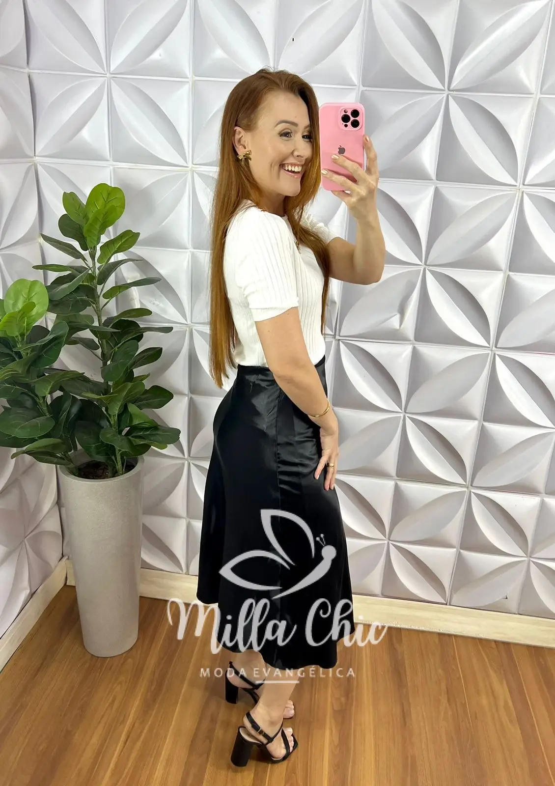 Saia Cetim Midi Com Elastico Na Cintura Viviane – Preta