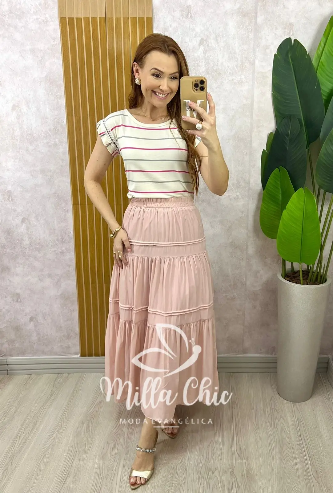 Saia Cibele em Rayon - Rosa Pó - Milla Chic