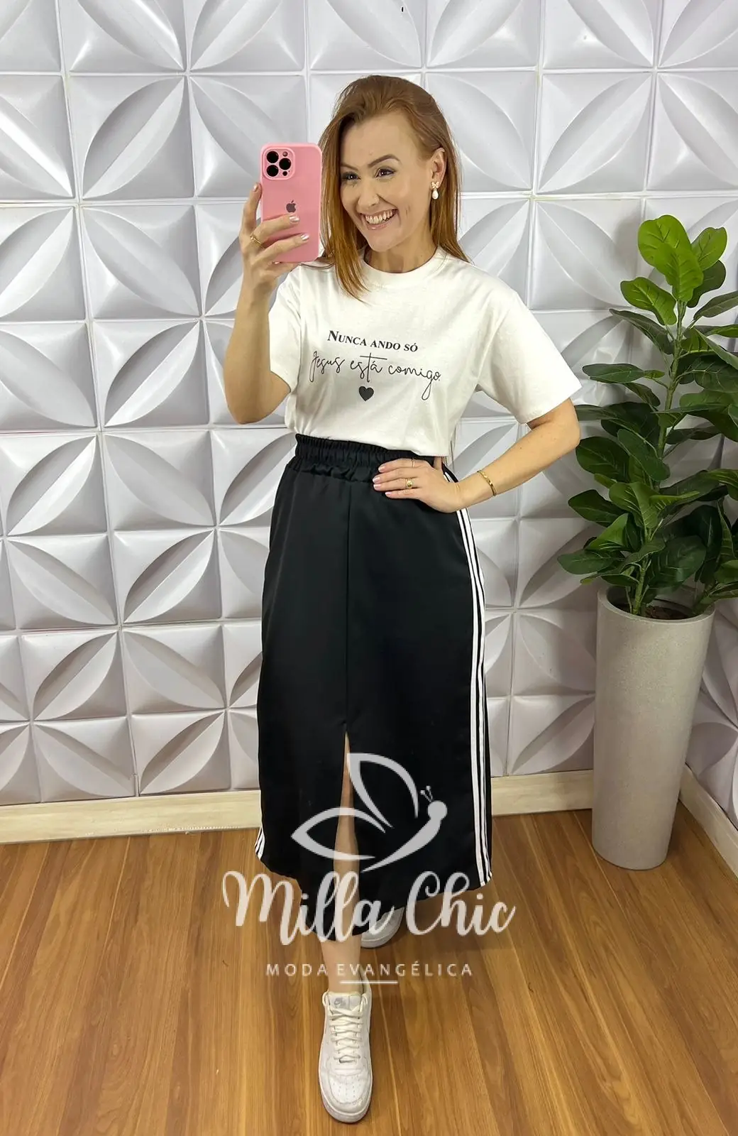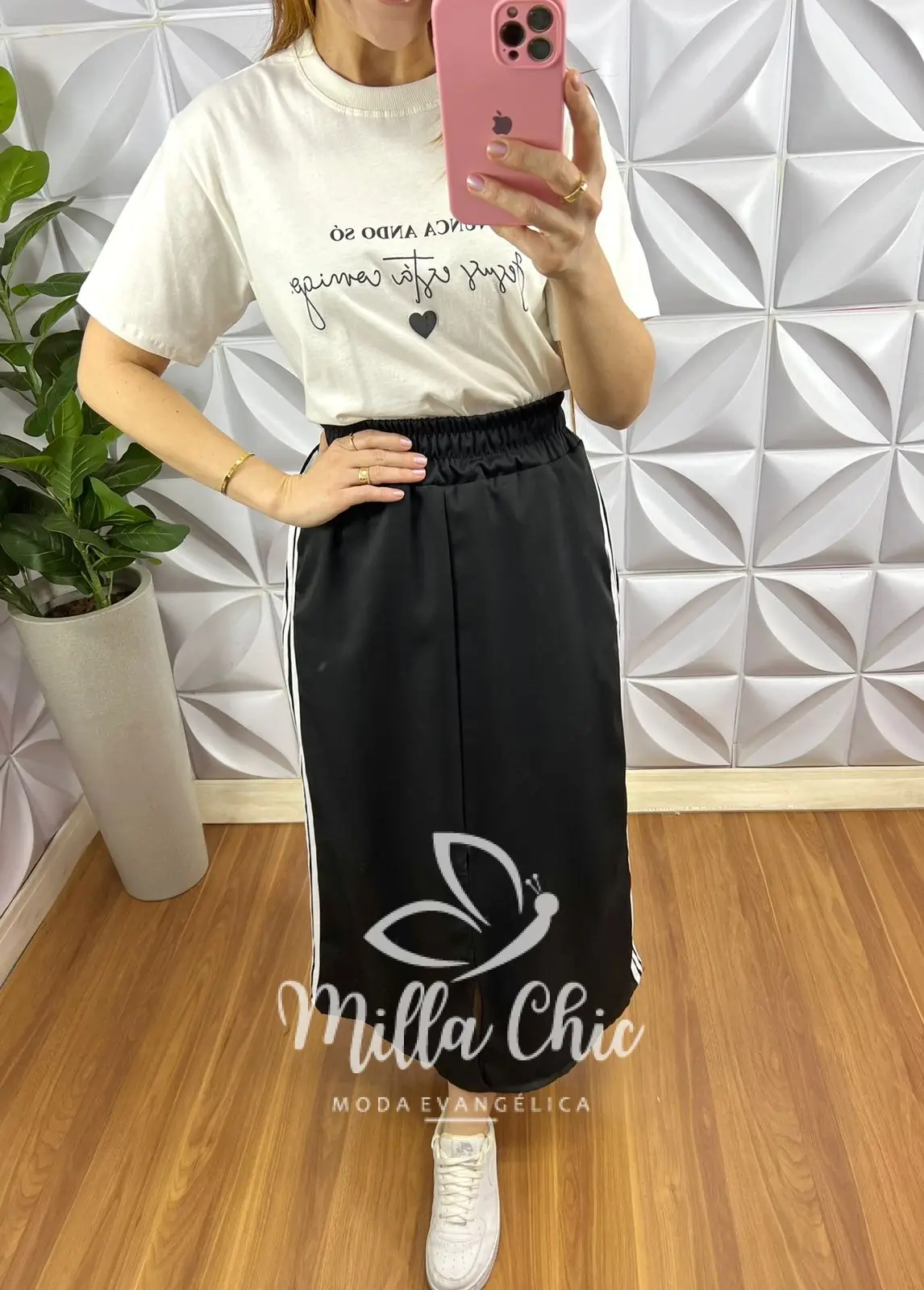 Saia no tecido Crepe Alfaiataria com caimento incrível! Para usar em qualquer ocasião e ficar confortável e estilosa! Com listras na lateral bicolor.