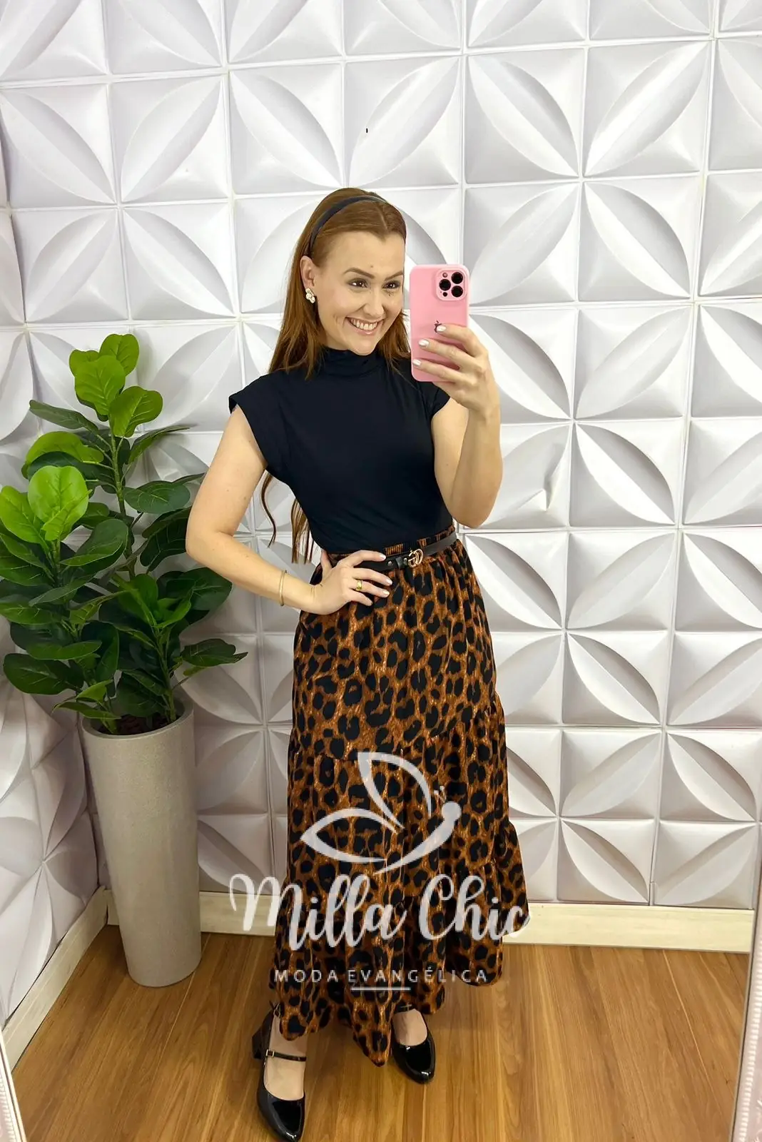 Saia Crepe Longa Com Lastex na Cintura Cida – Onça