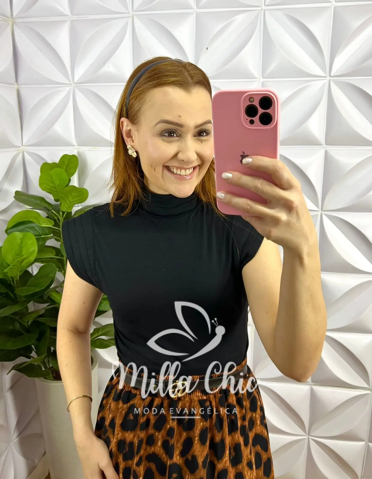 Tshirt Muscle Tee Viscolycra Gola Alta Mary - Preta - Milla Chic