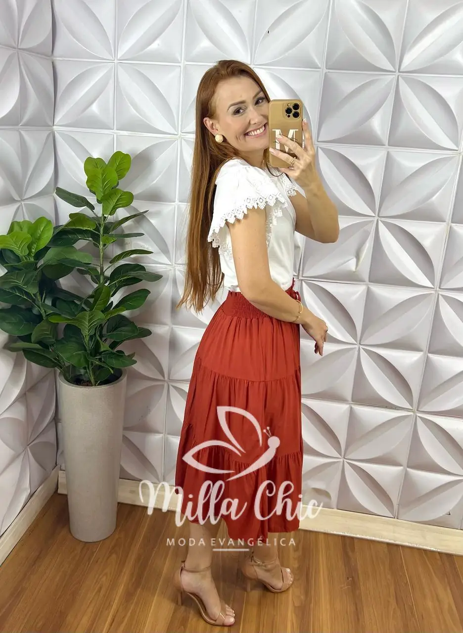 Essa é a sua saia Dany . Toda confeccionada em Viscolinho que é um tecido fresco e com um caimento maravilhoso . Sabe aquela saia para look casuais e chic . É essa !