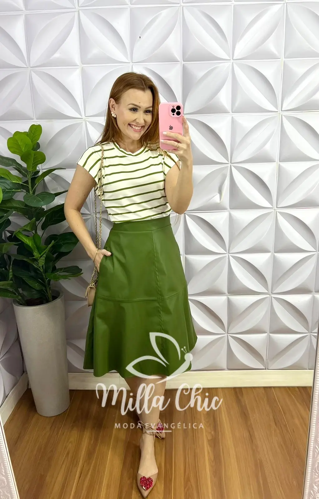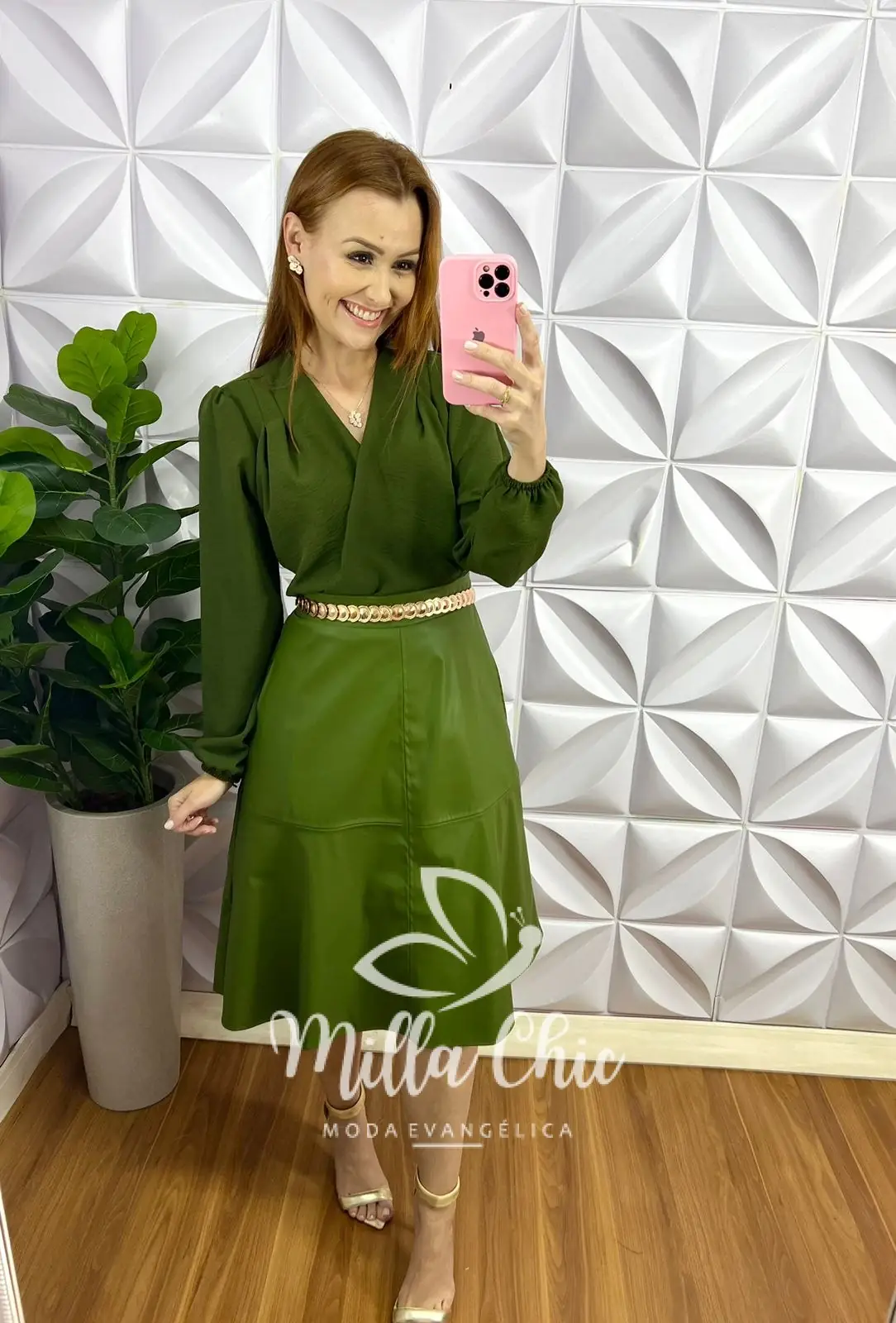 Saia De Couro Com Bolso Lateral Rosália - Verde - Milla Chic