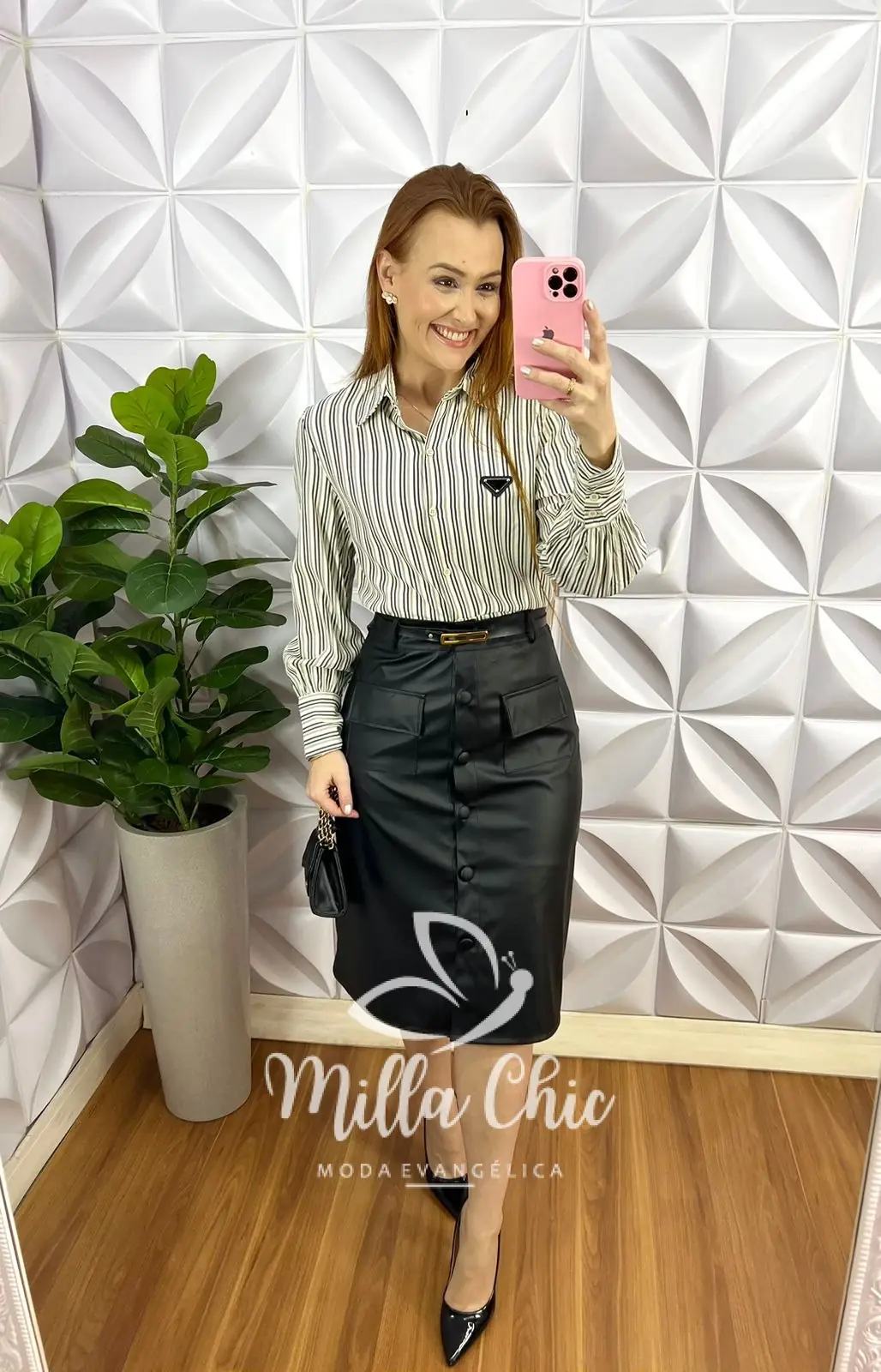 Que saia que está de arrasar irmãzonas! Toda no tecido de couro elegante chic lindona!