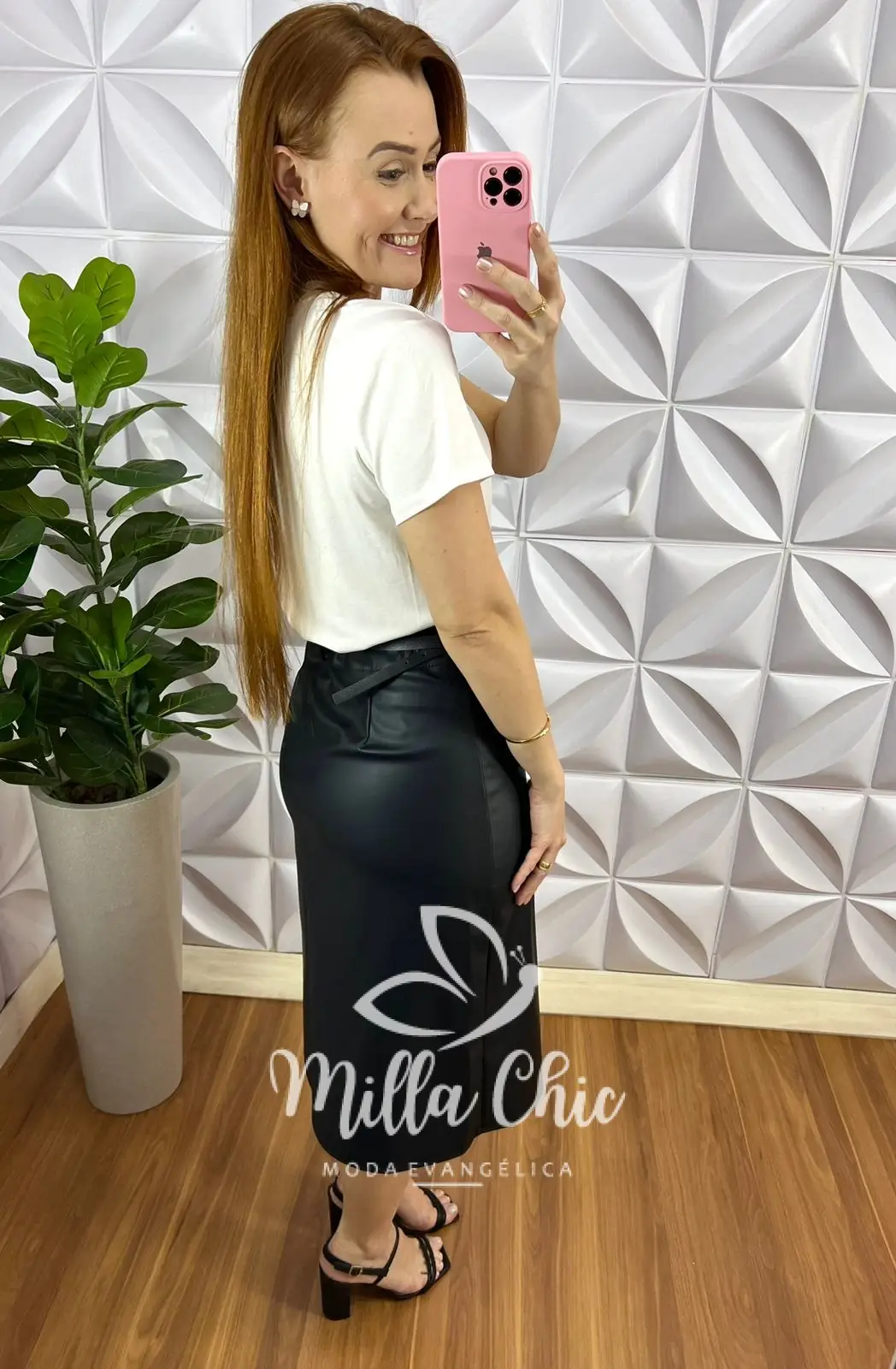 Que saia que está de arrasar irmãzonas! Toda no tecido de couro elegante chic lindona!