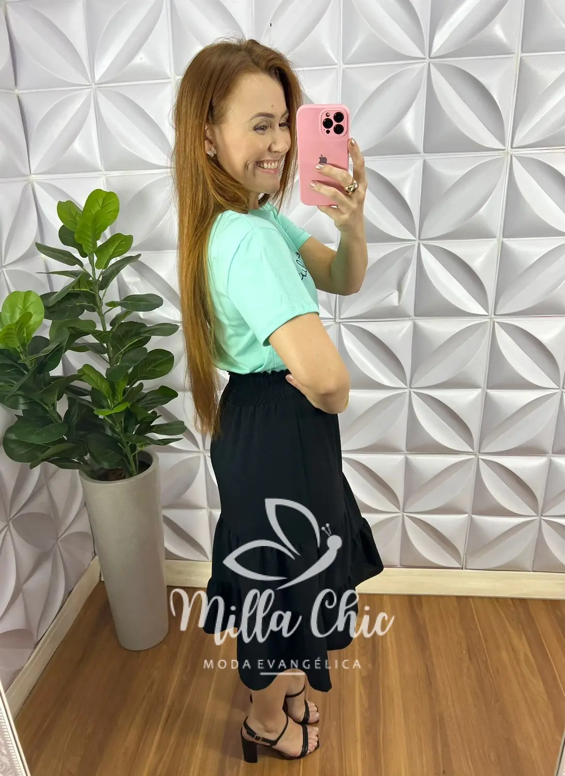 Saia Dunna Com Lastex Na Cintura Amara - Preta - Milla Chic