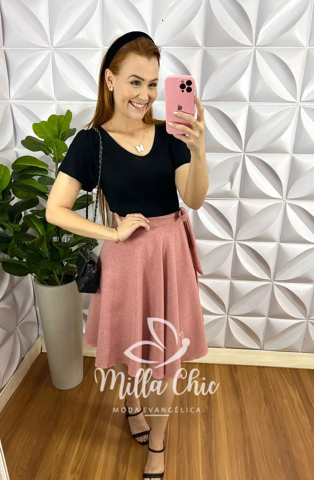 Saia Envelope Linhão Forrada Caimento Godê Lara – Rosa Ballet