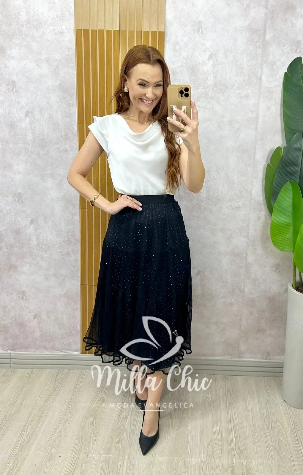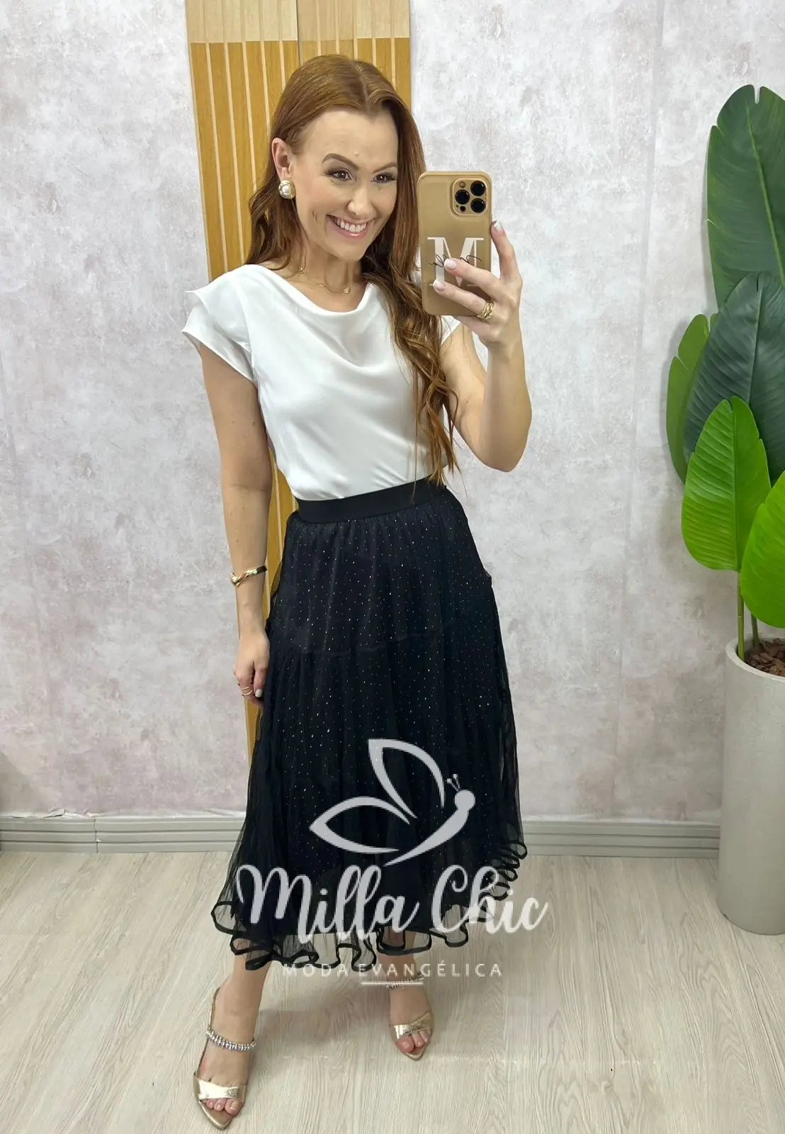 Uma peça que irradia charme e sofisticação, ideal para mulheres que desejam expressar sua personalidade através da moda. Com um design encantador ela é confeccionado com sobreposição em tule e embaixo com uma saia com aplicação em strass . Um saia que passa elegância , tem um caimento maravilhoso além de muito confortável . Está saia é perfeita para diversas ocasiões, para o culto , casamentos , ela deixa o look mais lindo e sofisticado .