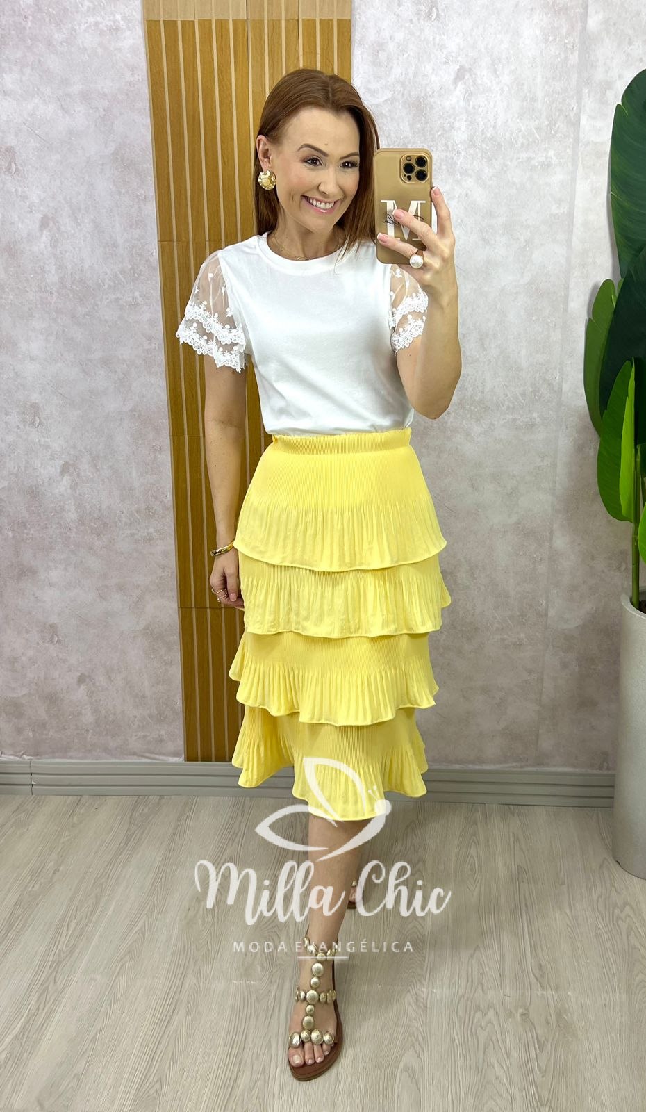 Saia Isa Em Camadas - Amarela - Milla Chic