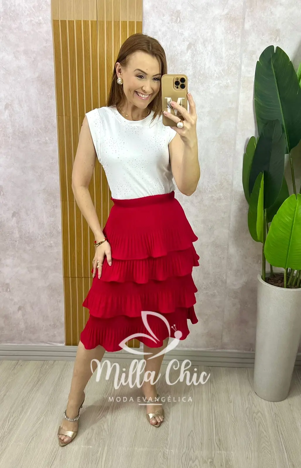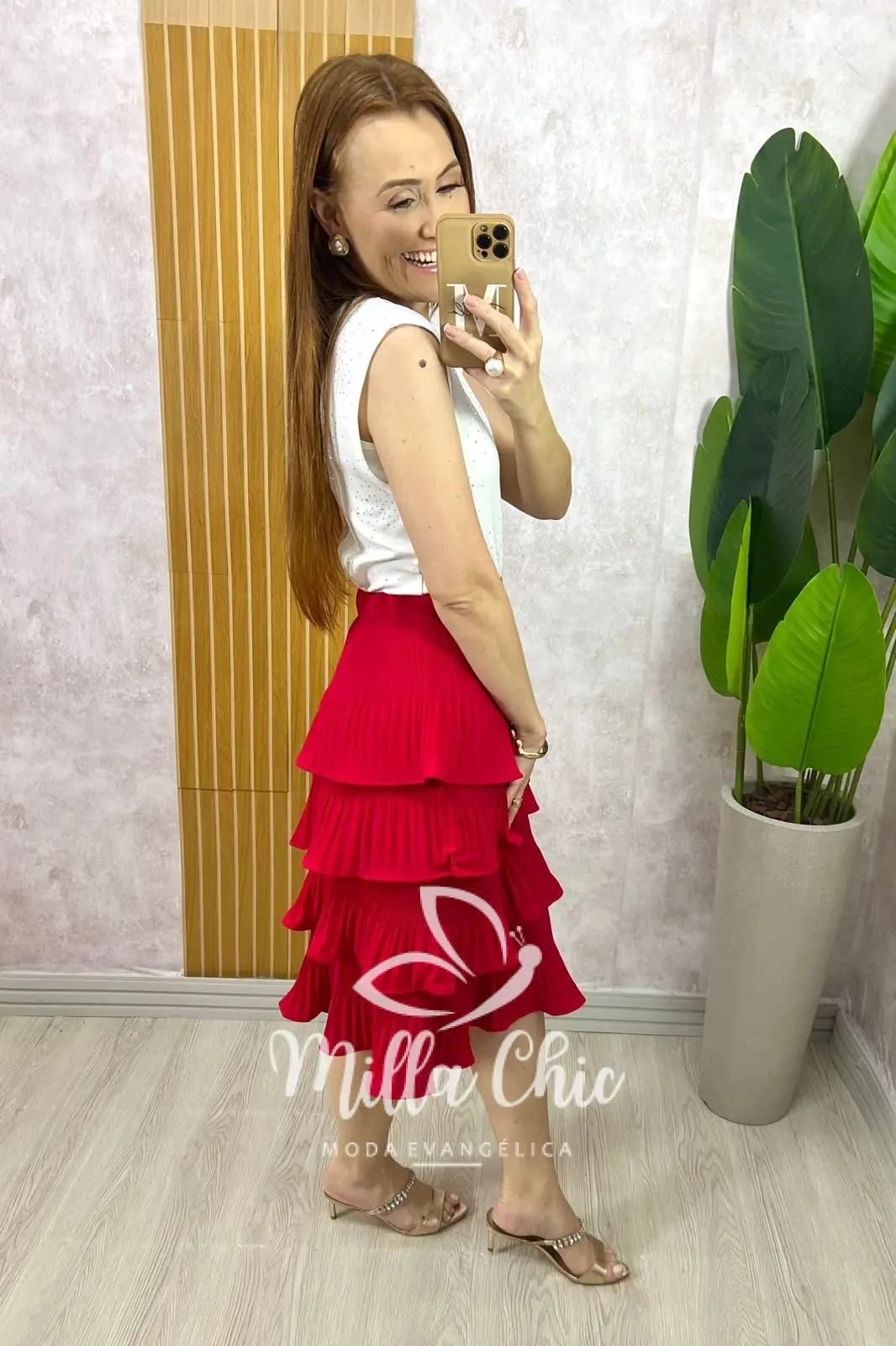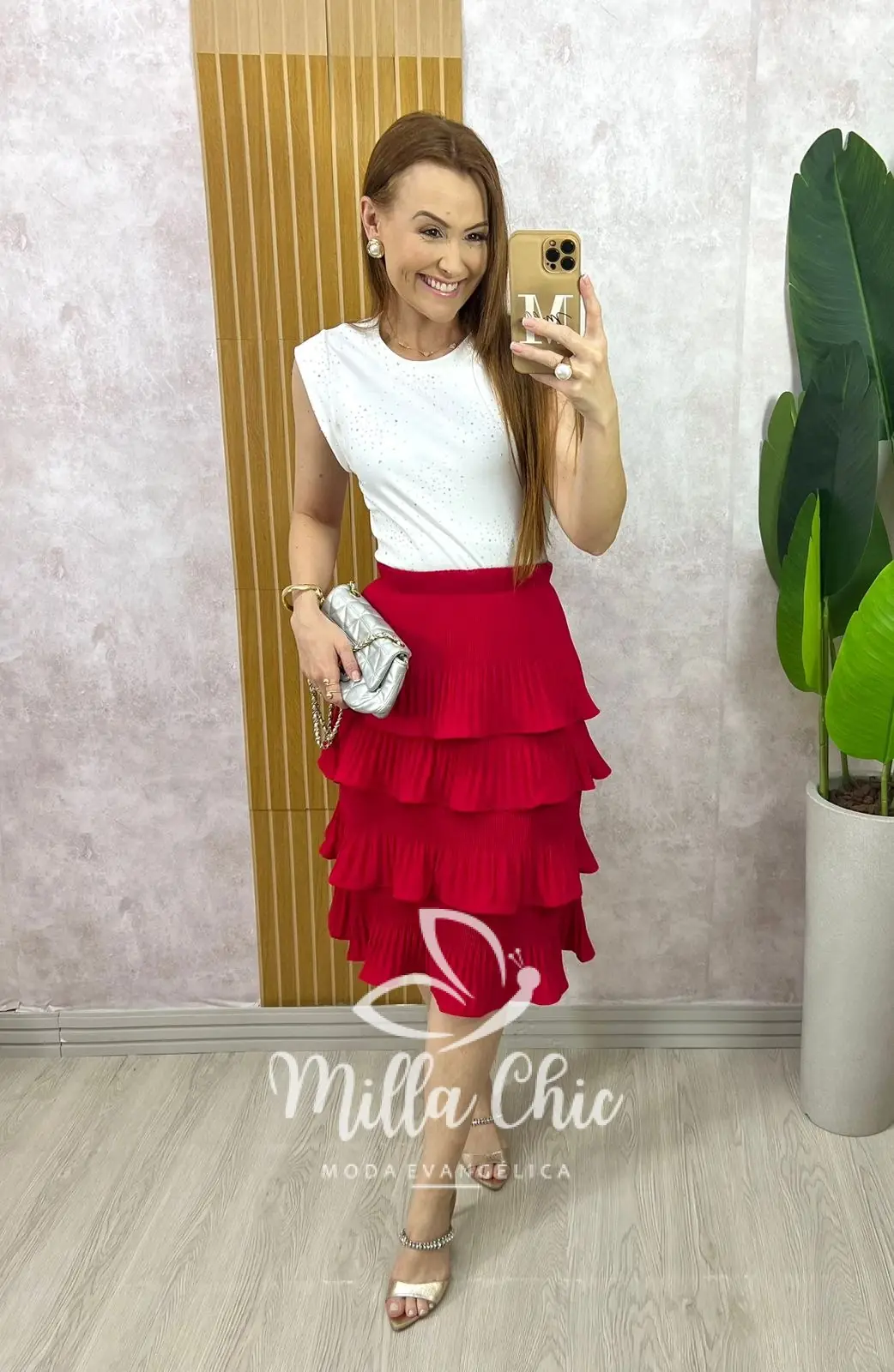 Saia Isa Em Camadas - Vermelha - Milla Chic