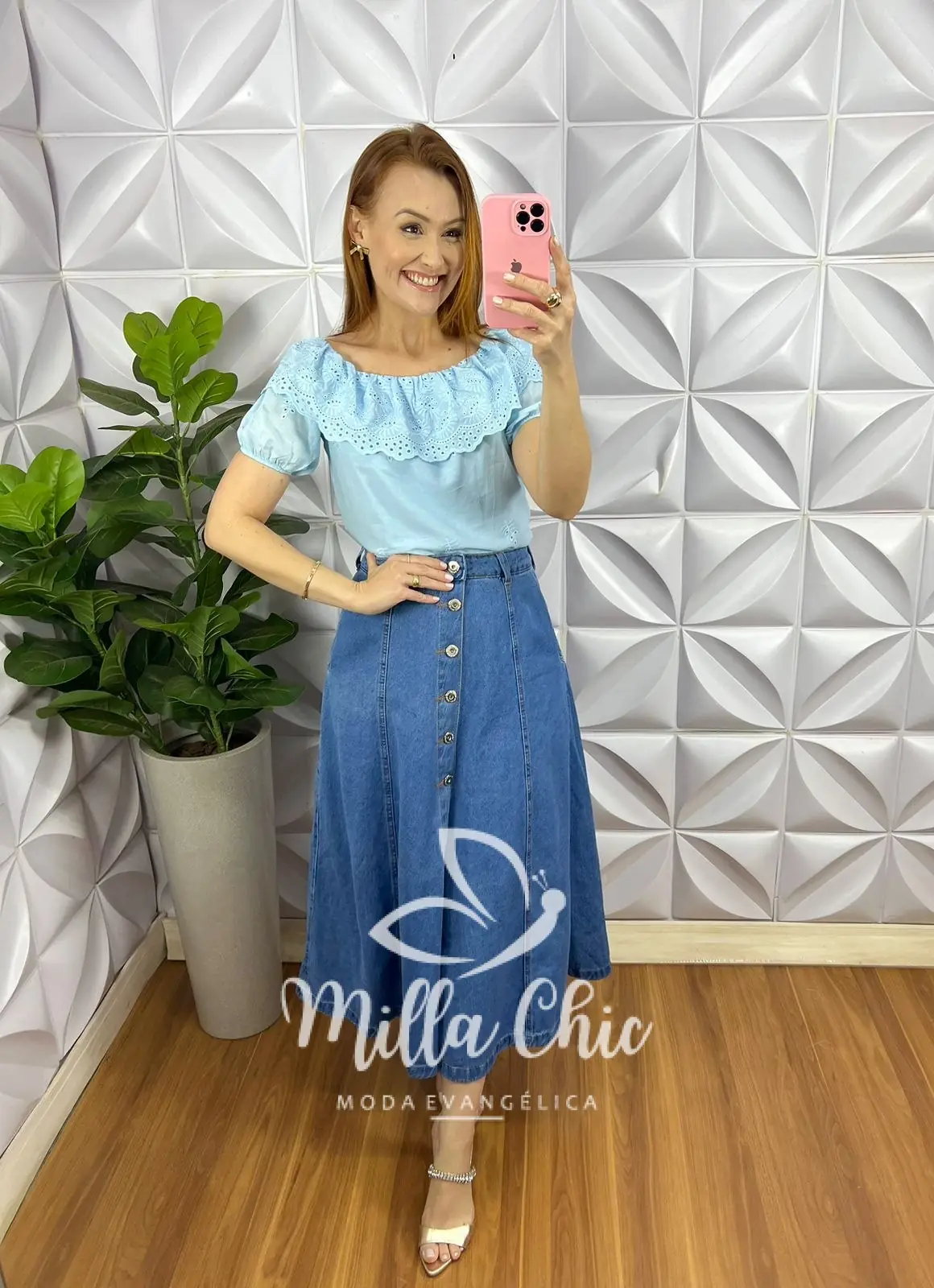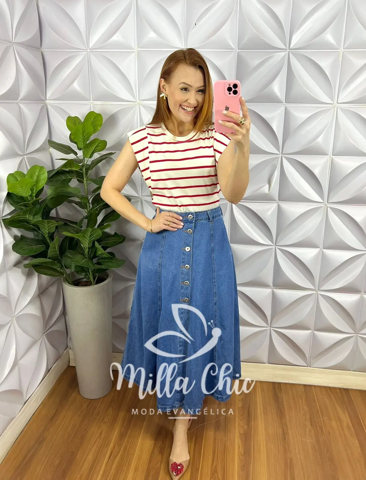 Saia Jeans tecido incrível e pratico! nessa modelagem incrível para fazer vários looks!