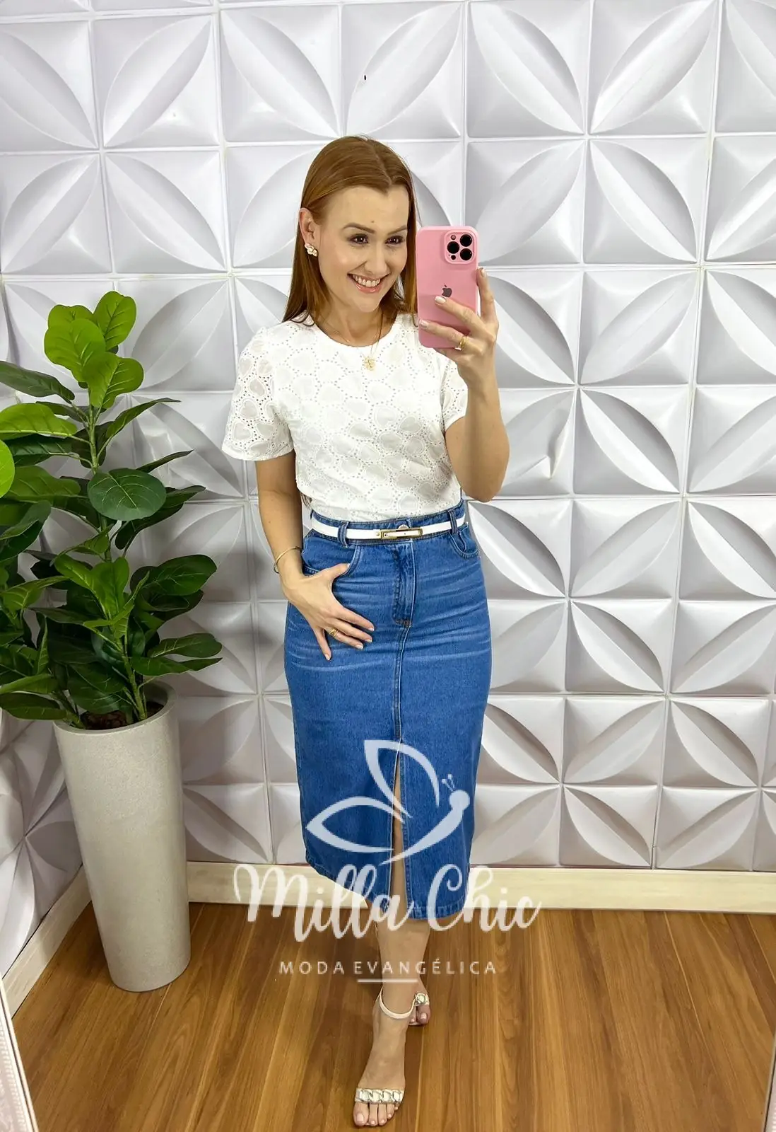 Saia Jeans tecido incrível e pratico! nessa modelagem incrível!
