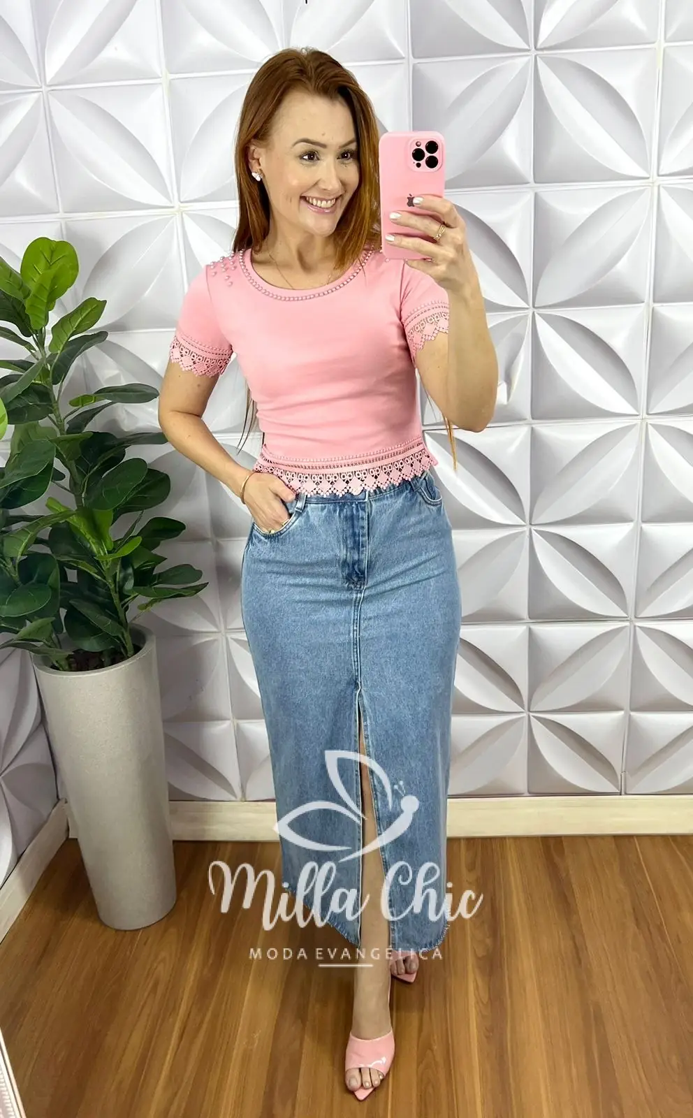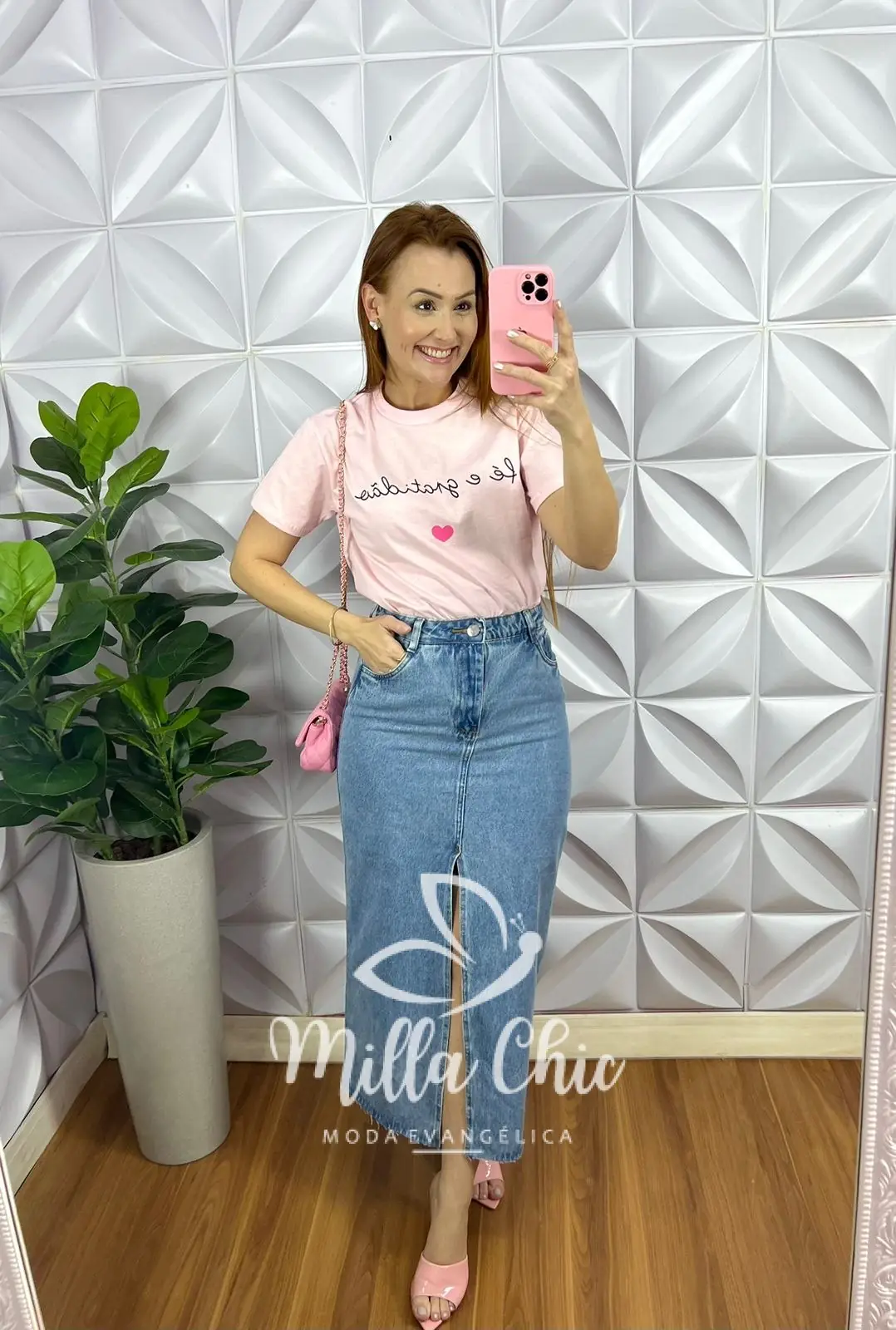 Saia Jeans Com Fendas Frontal Mídi Larissa – Jeans