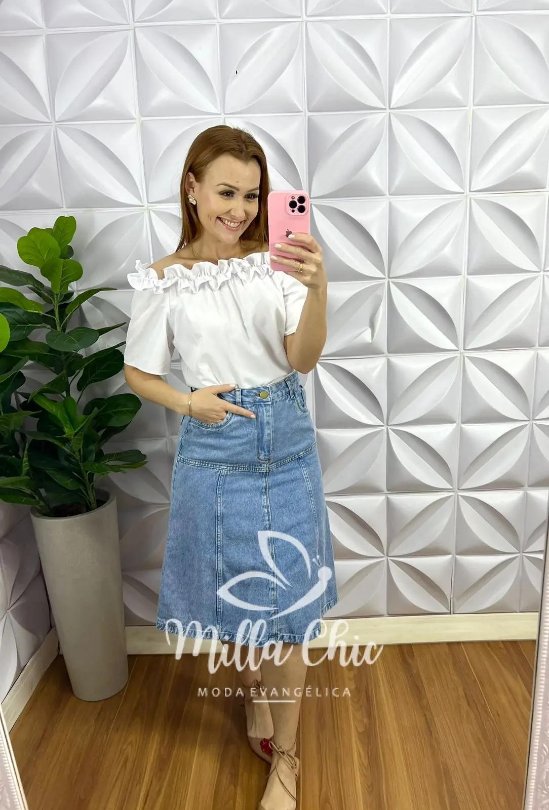 Saia no Jeans que está de arrasar! Para fazer vários look chic lindão!