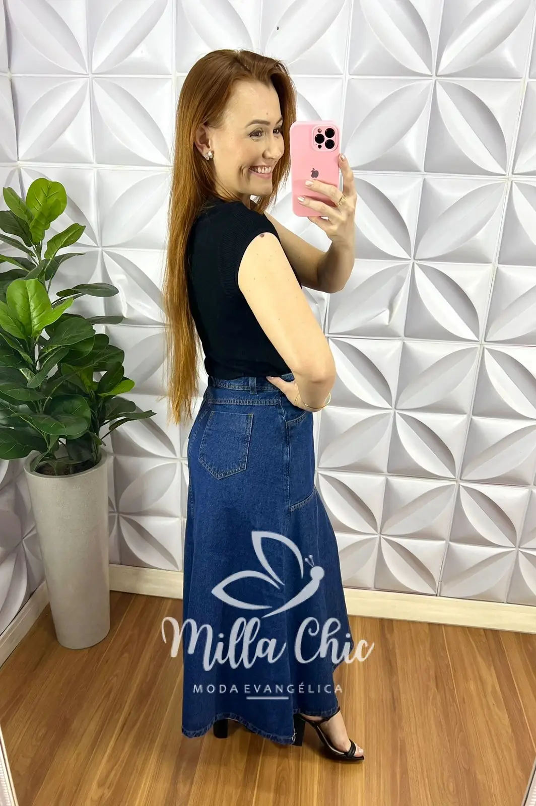 Saia no Jeans que está de arrasar! Para fazer vários look chic lindão! Nesse modelo bem moderno!