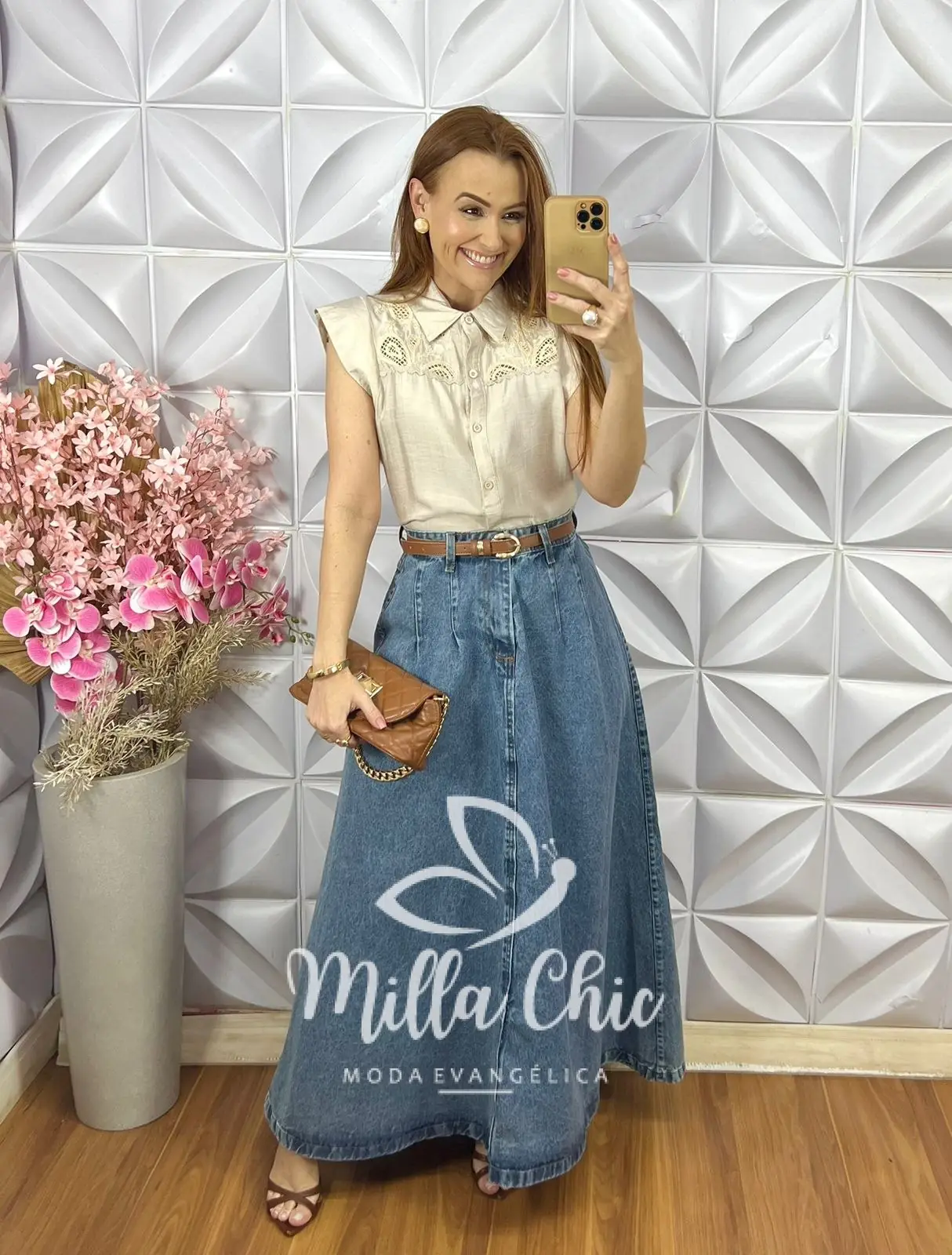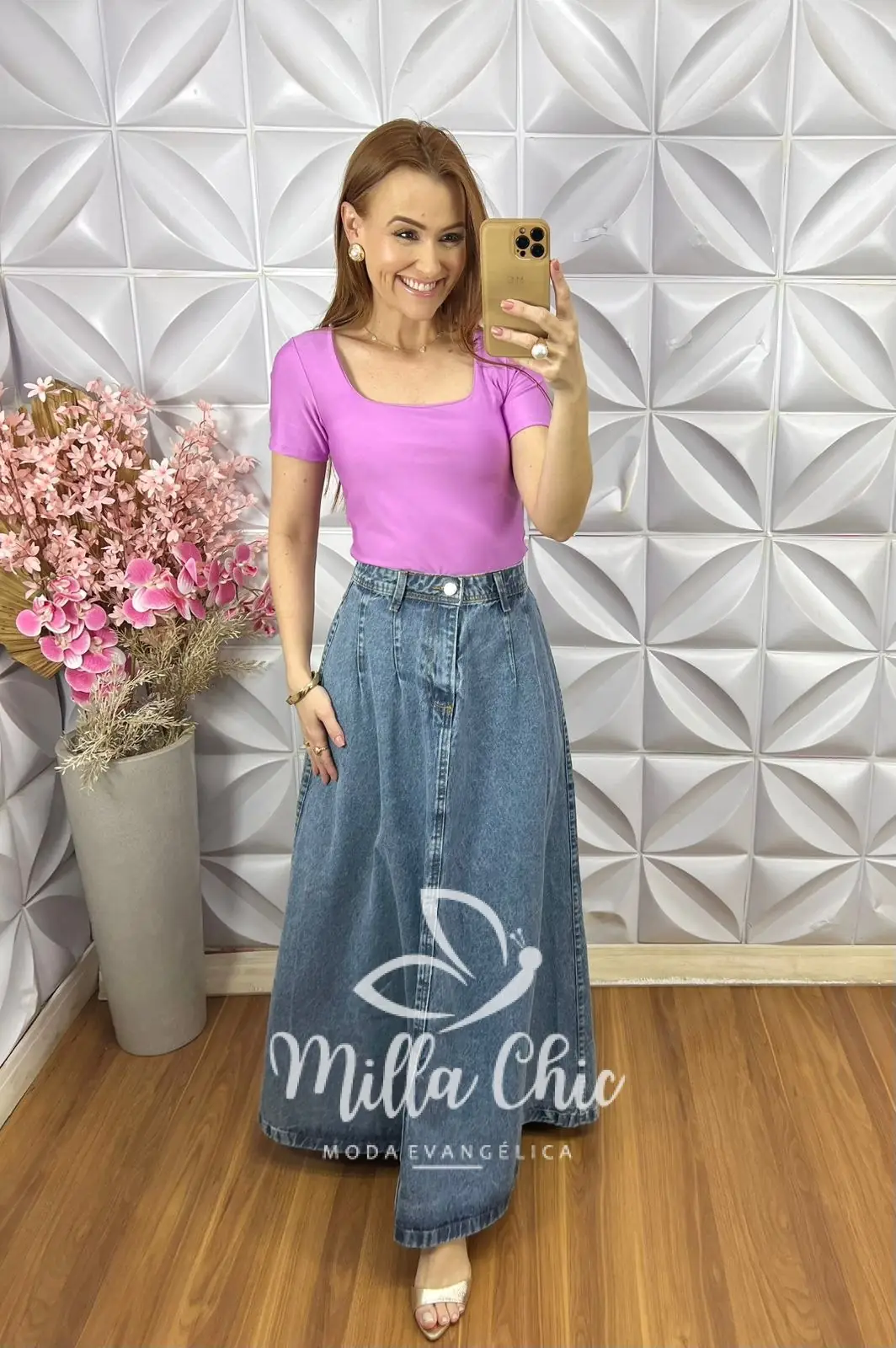 A saia jeans Magali é um modelo clássico e chic que não cai de moda . Deixa minhas irmãs super estilosas .