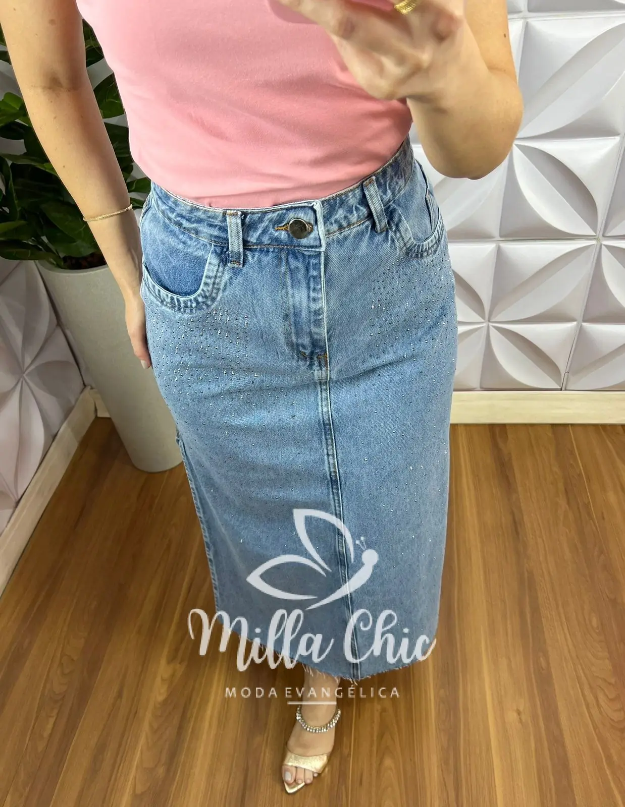 - Saia Jeans tecido incrível e pratico! nessa modelagem incrível! Toda de Strass que esta um charme!