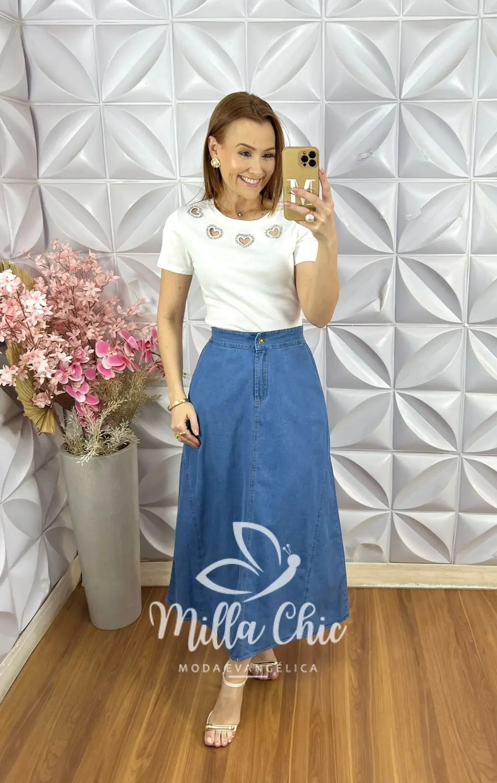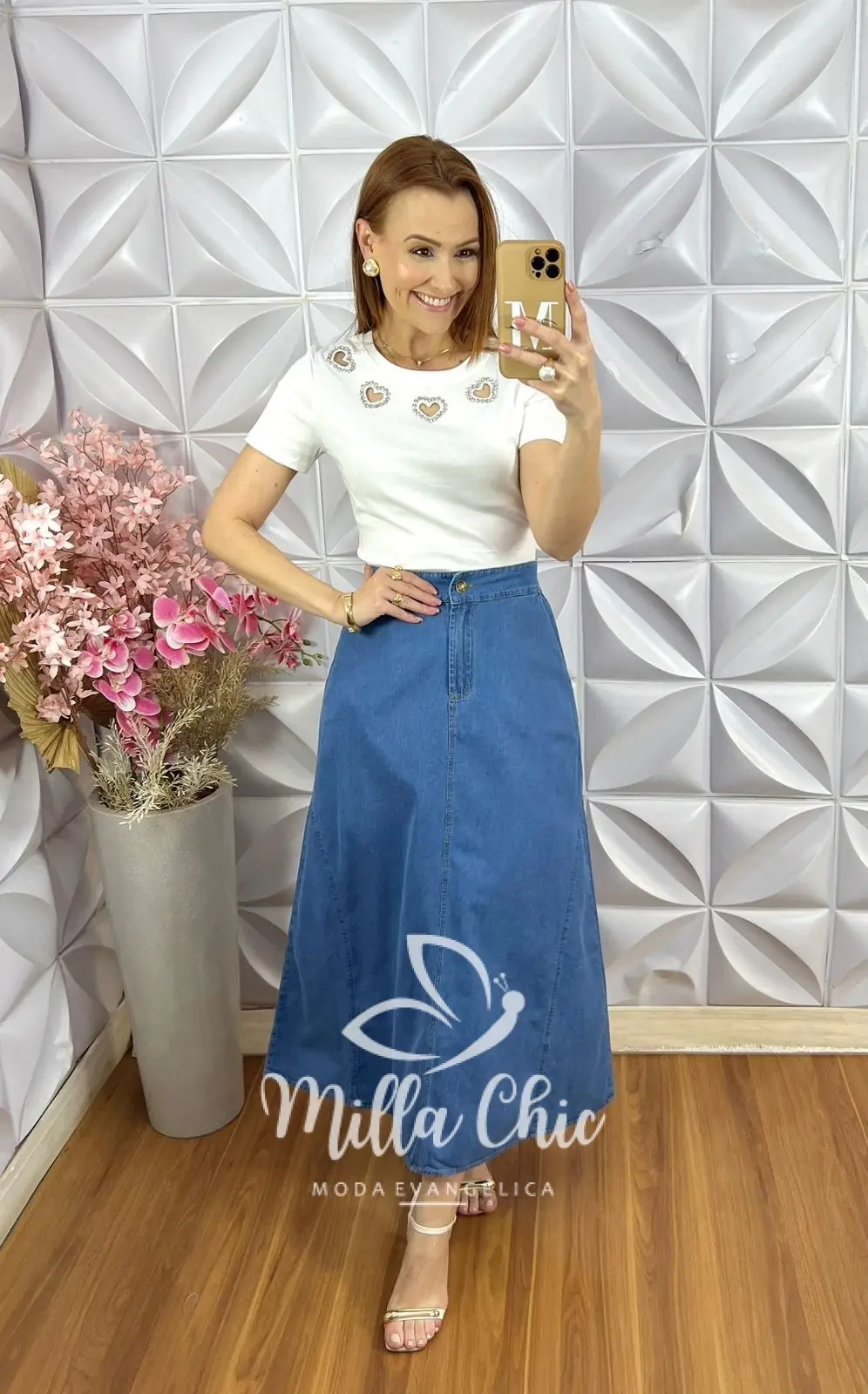 Com T-shirt ou camisa a saia Sabrina vai te deixar chic lindona.