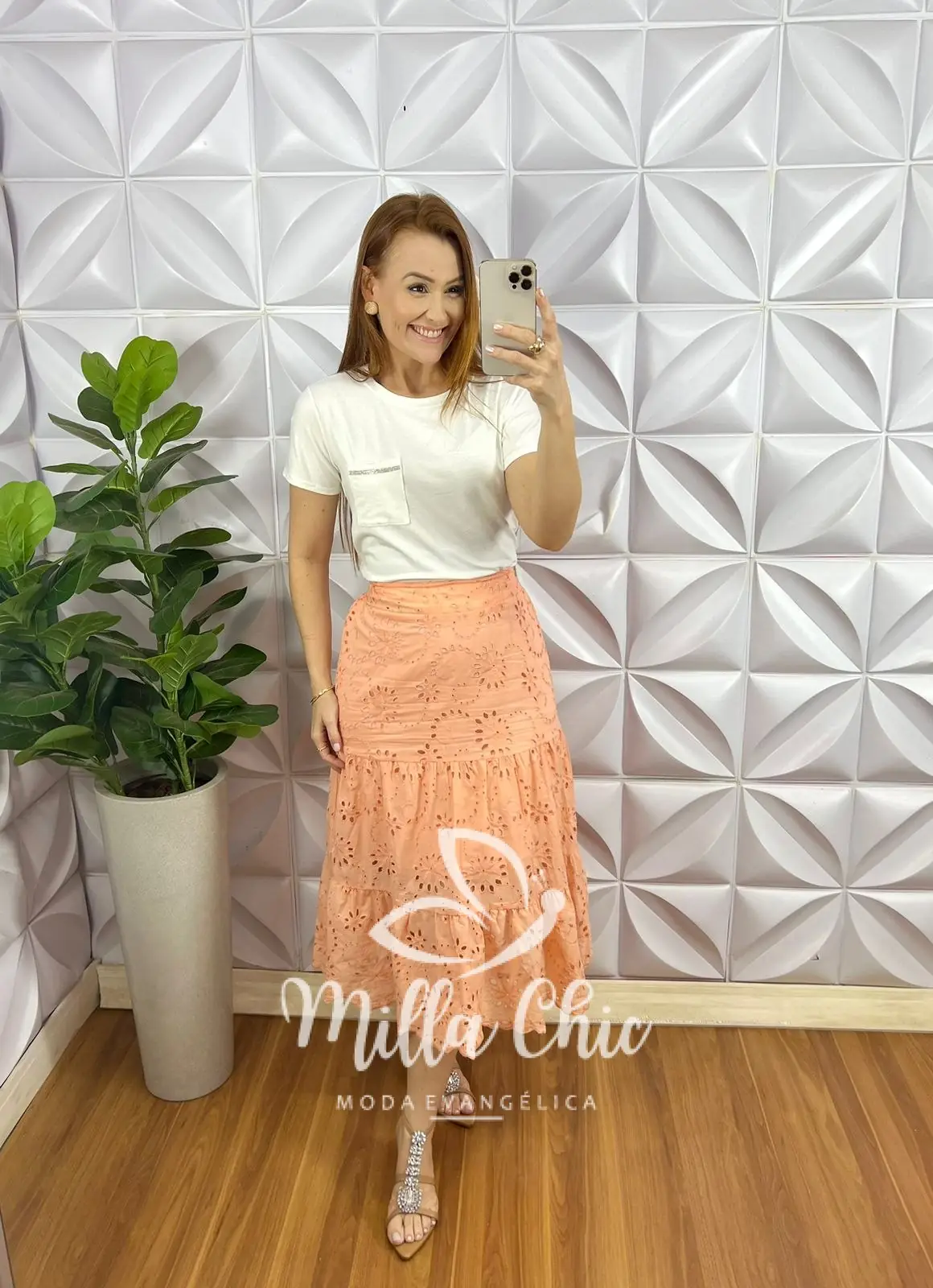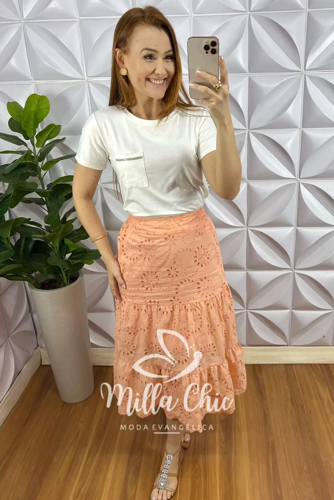 Saia Leise De Algodão Forrada Três Marias Marisa – Pêssego