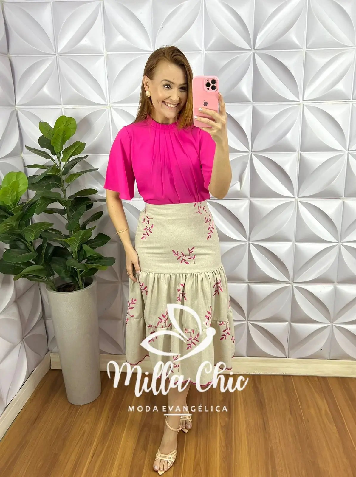 Que saia que está de arrasar irmãzonas! Toda no tecido Linho Bordado com caimento incrível!