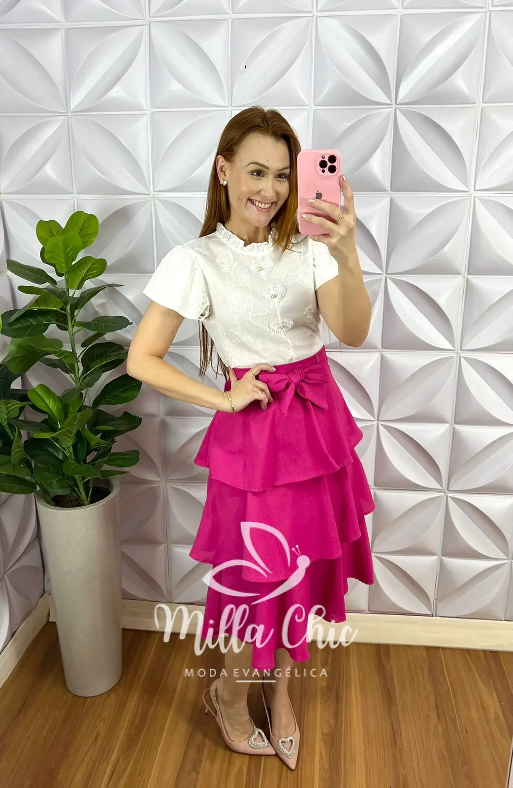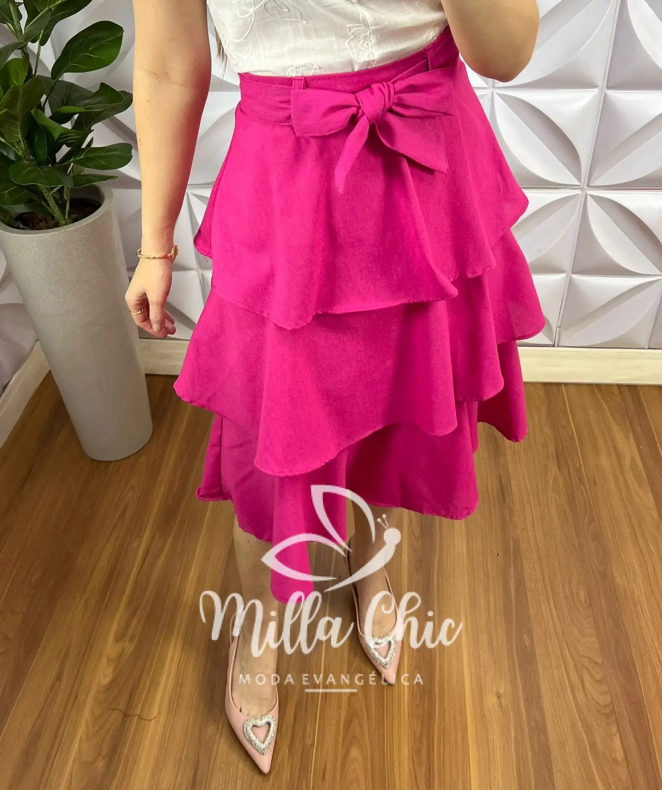 Saia Linho Com Camadas Três Marias Mídi Stela – Pink