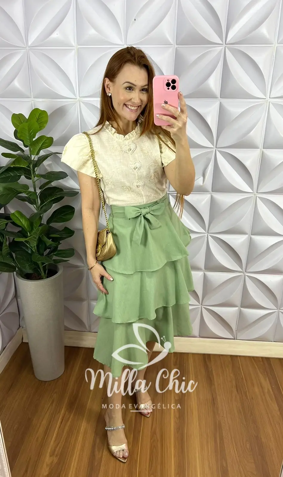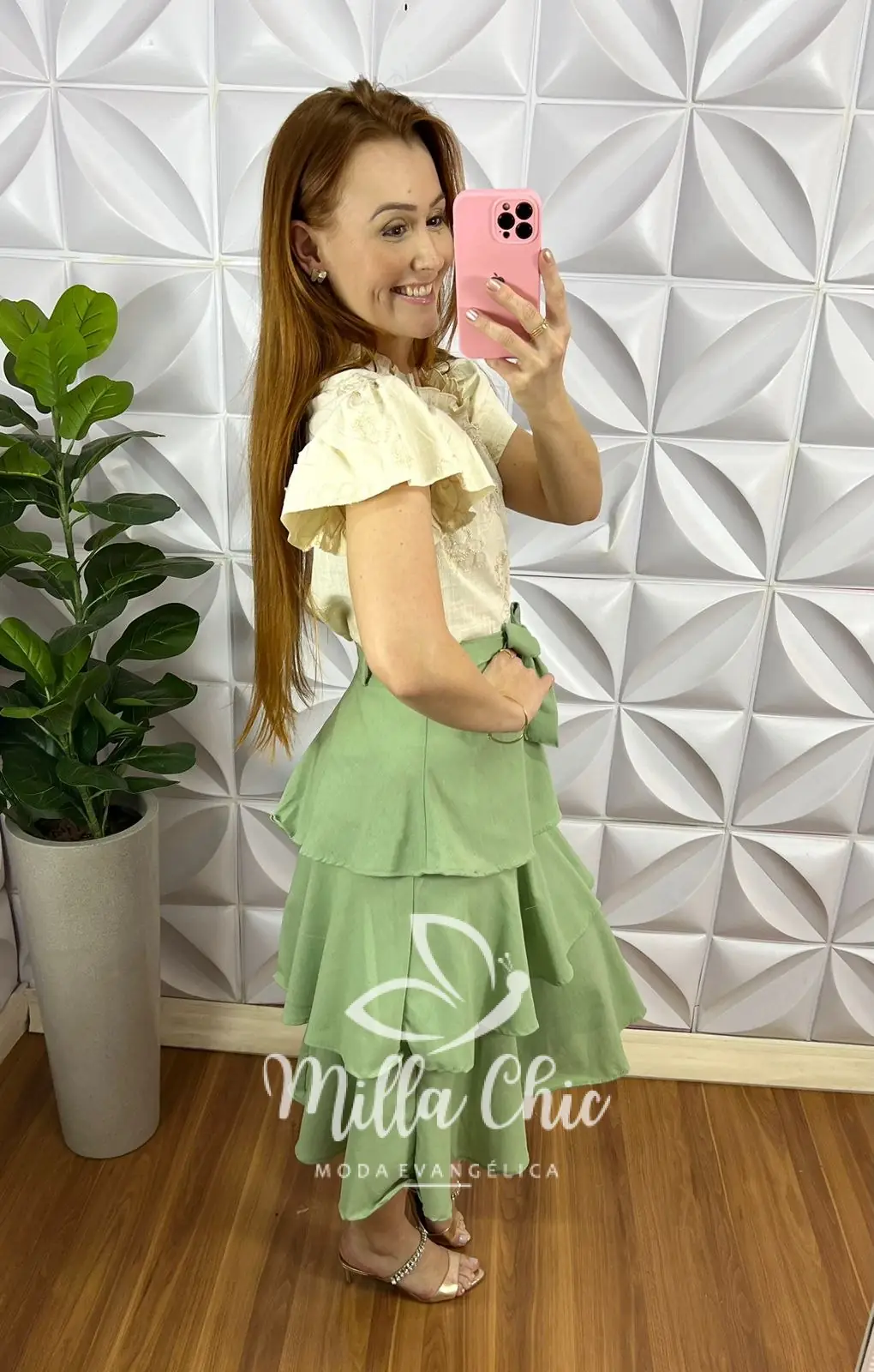 Saia Linho Com Camadas Três Marias Mídi Stela – Verde Menta
